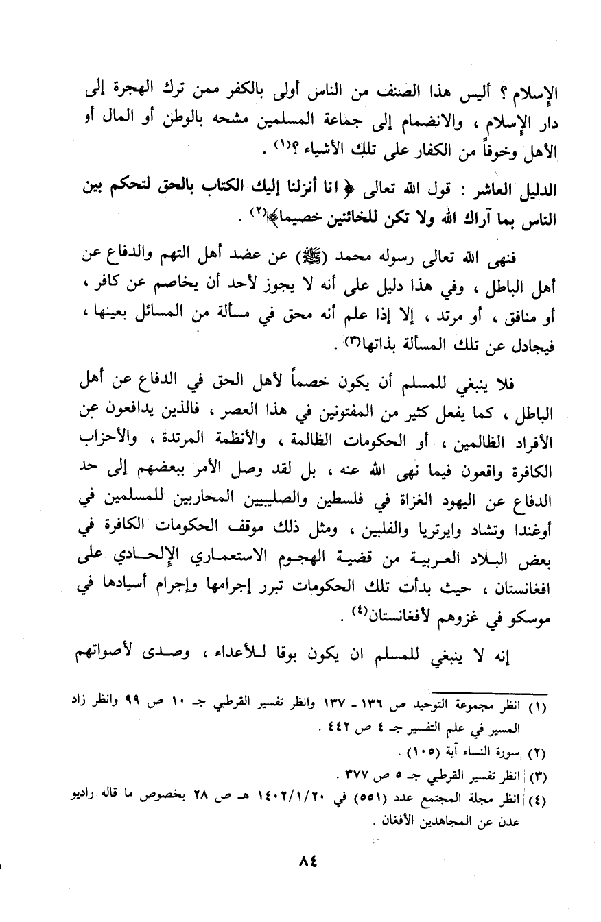 (¬3) انظر مجلة المجتمع عدد (551) في 20/ 1/ 1402 ص (28) بخصوص ما قاله راديوا عدن عن المجاهدين الأفغان.