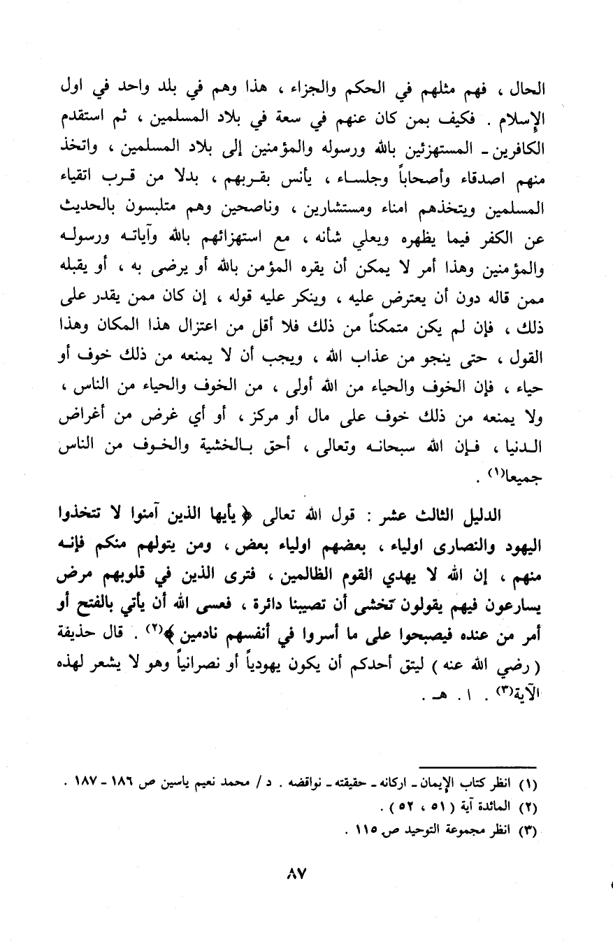 (¬1) انظر كتاب الإيمان -أركانه - حقيقته - نواقضه د/ محمد نعيم ياسين (186، 187).