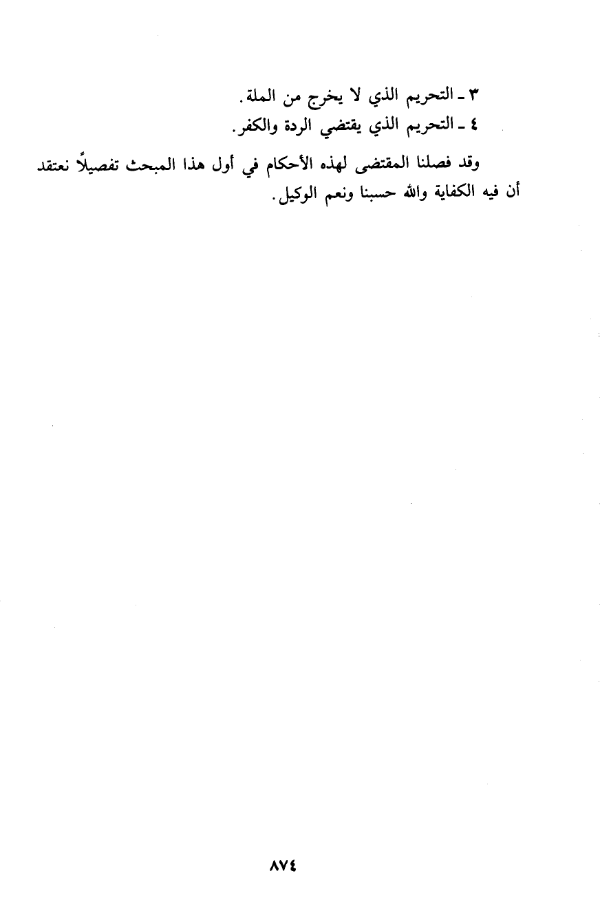 وقد فصلنا المقتضى لهذه الأحكام في أول هذا المبحث تفصيلاً نعتقد أن فيه الكفاية والله حسبنا ونعم الوكيل.
