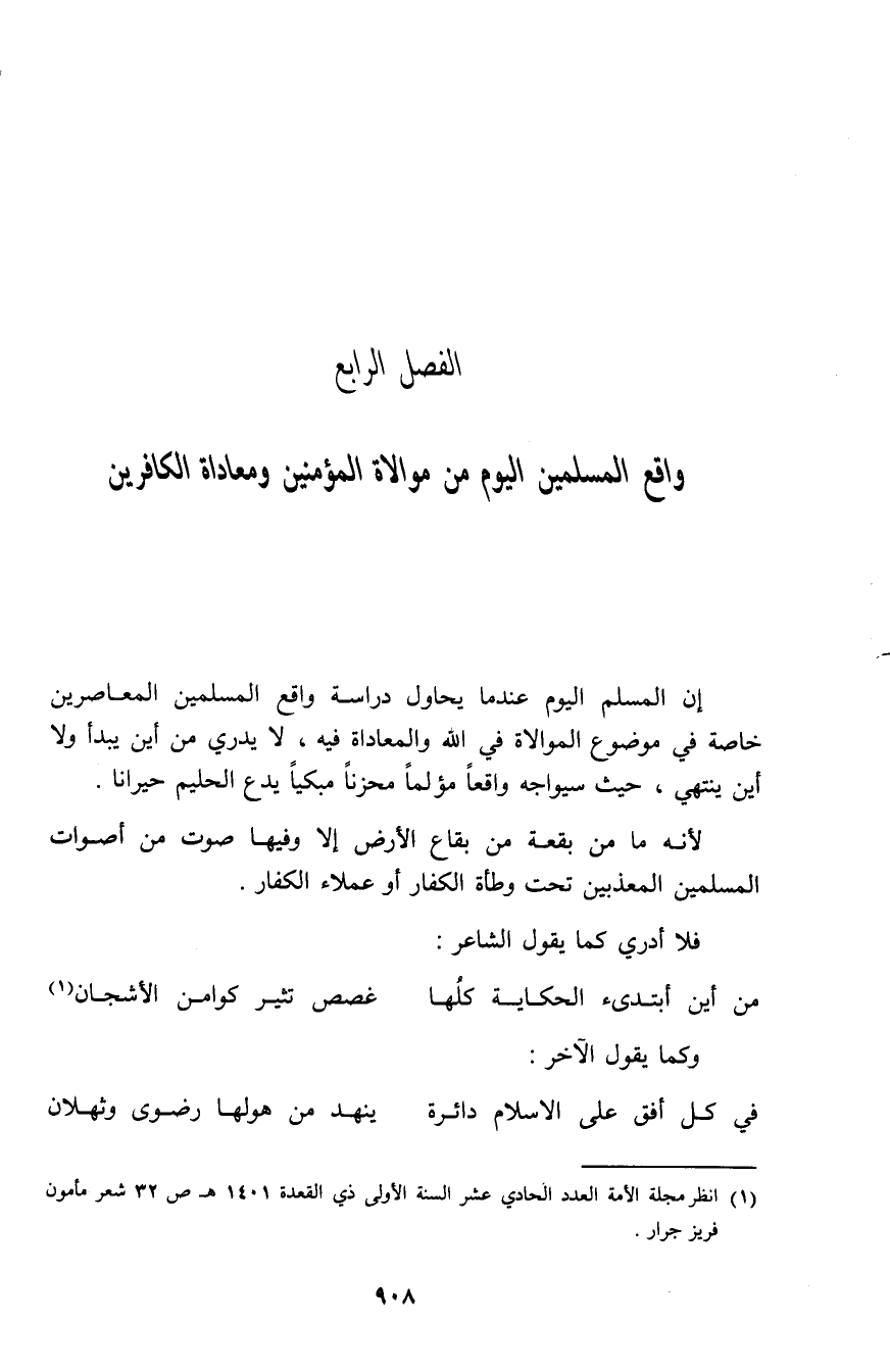 الفصل الرابع: واقع المسلمين اليوم من موالاة المؤمنين ومعاداة الكافرين