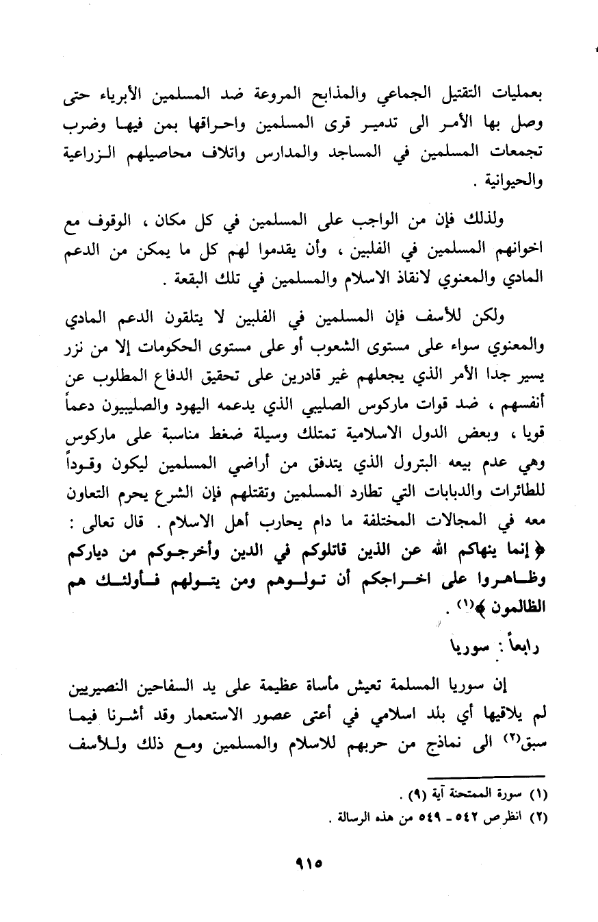 إن سوريا المسلمة تعيش مأساة عظيمة على يد السفاحين النصيريين لم يلاقيها أي بلد إسلامي في أعتى عصور الاستعمار وقد أشرنا فيما سبق (¬2) إلى نماذج من حربهم للإسلام والمسلمين ومع ذلك وللأسف