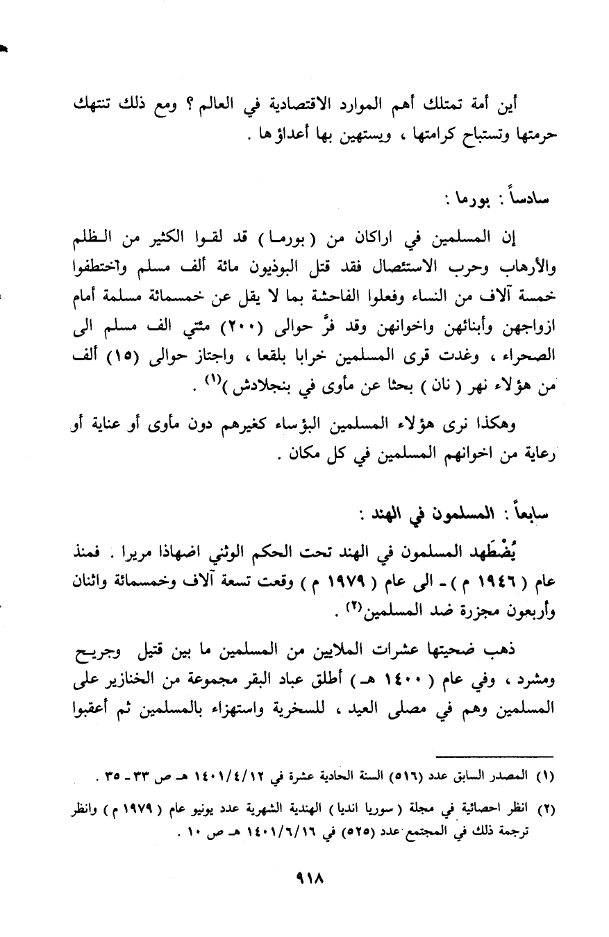 (¬2) انظر إحصائية في مجلة (سوريا انديا) الهندية الشهرية عدد يونيو عام (1979م) وانظر ترجمة ذلك في المجتمع عدد (525) في 16/ 6/1401هـ ص10.