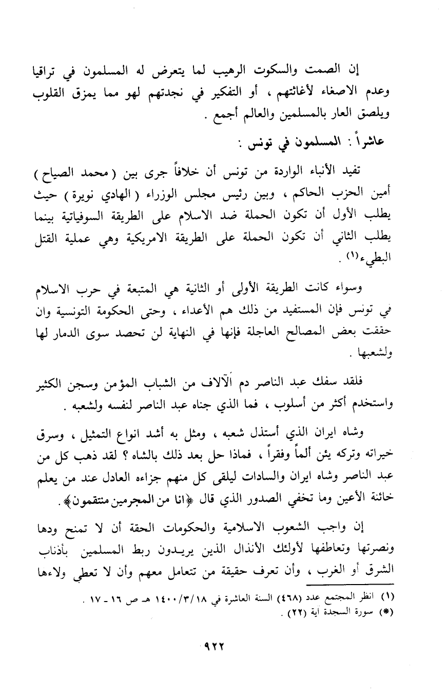 (¬1) انظر المجتمع عدد (468) السنة العاشرة في 18/ 3/1400هـ ص16 - 17.