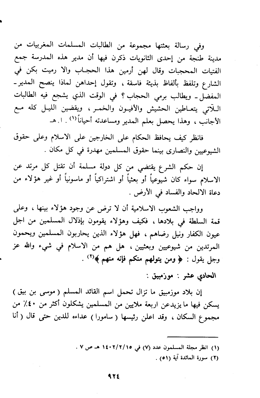 (¬1) انظر مجلة المسلمون عدد (7) في 15/ 2/1402هـ ص7.