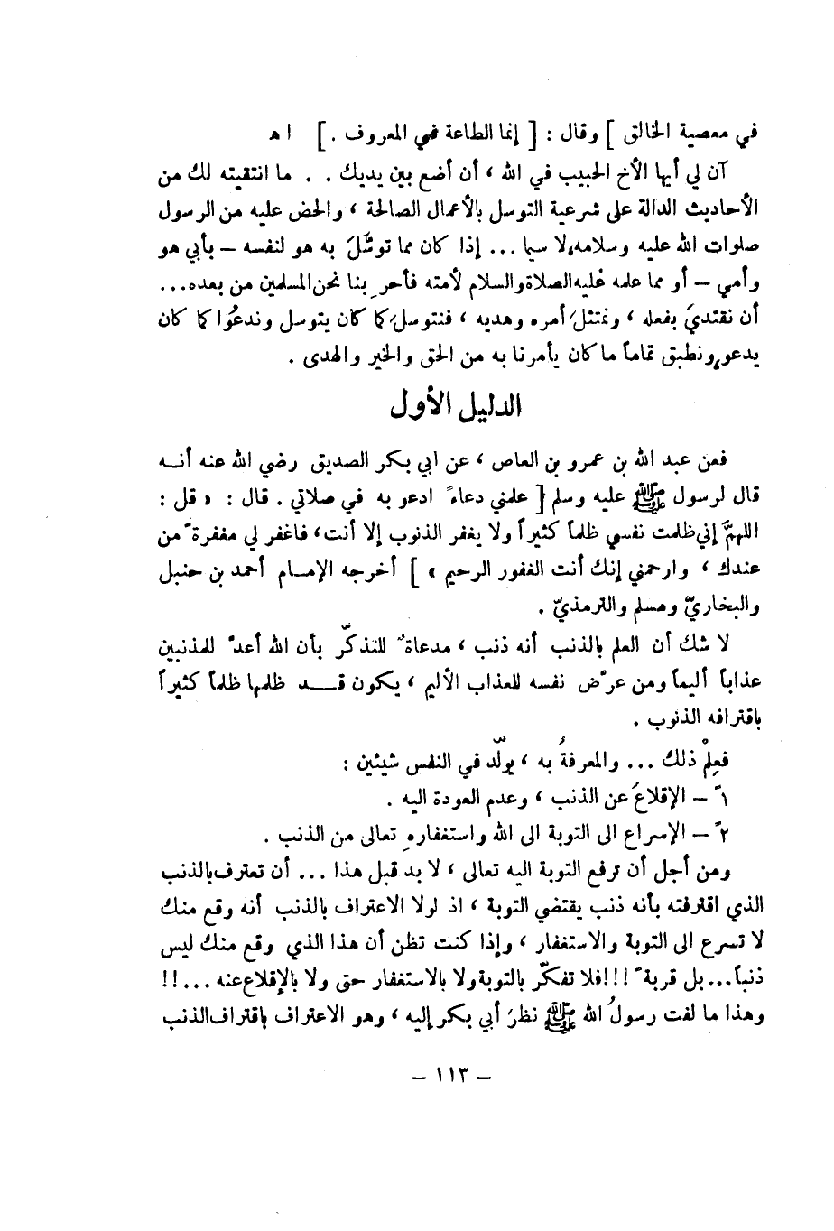 فعن عبد الله بن عمرو بن العاص عن أبي بكر الصديق - رضي الله عنه - أنه قال لرسوله - صلى الله عليه وسلم -[علمني دعاء ادعو به في صلاتي. قال: ((قل: اللهم إني ظلمت نفسي كثيراً ولا يغفر الذنوب إلا أنت فاغفر لي مغفرة من عندك وارحمني إنك أنت الغفور الرحيم))] أخرجه الإمام أحمد بن حنبل والبخاري ومسلم والترمذي.