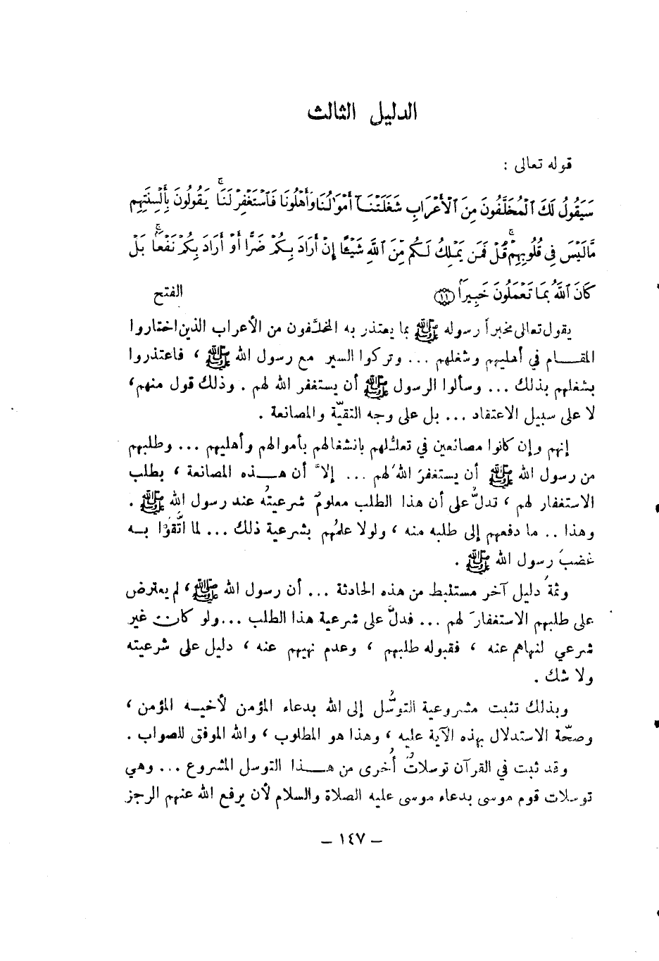 إنهم وإن كانوا مصانعين في تعللهم بانشغالهم بأموالهم وأهليهم وطلبهم من رسول الله - صلى الله عليه وسلم - أن يستغفر لهم ... إلا أن هذه المصانعة بطلب الاستغفار لهم تدل على أن هذا الطلب معلوم شرعيته عند رسول الله - صلى الله عليه وسلم - وهذا ... ما دفعهم إلى طلبه منه ولولا علمهم بشرعية ذلك ... لما اتقوا به غضب رسول الله - صلى الله عليه وسلم -.