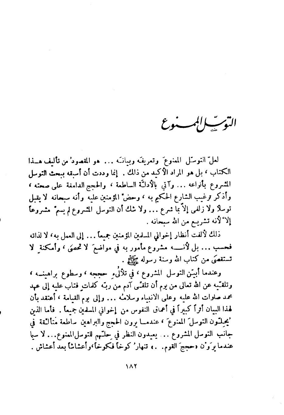 لعل التوسل الممنوع وتعريفه وبيانه ... هو المقصود من تأليف هذا الكتاب بل هو المراد الأكيد من ذلك إنما وددت أن أسبقه ببحث التوسل المشروع بأنواعه ... وآتي بالأدلة الساطعة والحجج الدامغة على صحته وأذكر بالشارع الحكيم به وحض المؤمنين عليه وأنه سبحانه لا يقبل توسلاً ولا زلفى إلا بما شرع ... ولا شك أن التوسل المشروع لم يسم مشروعاً إلا لأنه تشريع من الله سبحانه.
