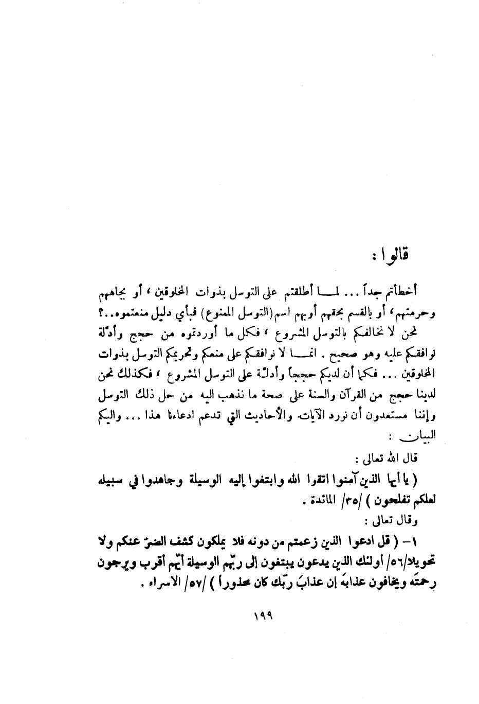 1 - (قل ادعوا الذين زعمتم من دونه فلا يملكون كشف الضر عنكم ولا تحويلاً /56/ أولئك الذين يدعون يبتغون إلى ربهم الوسيلة أيهم أقرب ويرجون رحمته ويخافون عذابه إن عذاب ربك كان محذوراً) /57/ الإسراء.