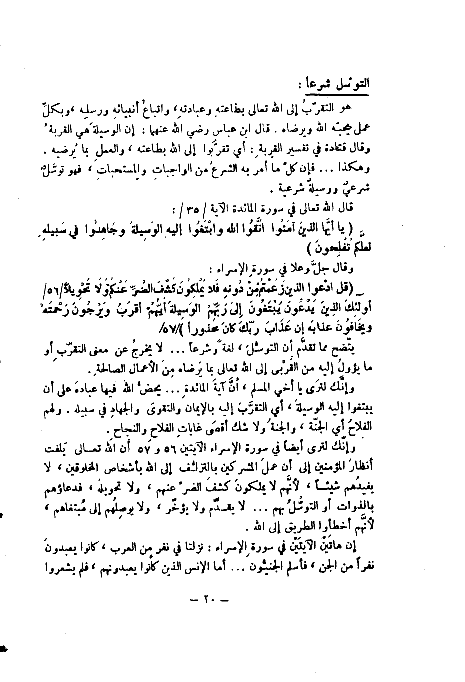 وإنك لترى أيضاً في سورة الإسراء الآيتين 56 و 57 أن الله تعالى يلفت أنظار المؤمنين إلى أن عمل المشركين بالتزلف إلى الله بأشخاص المخلوقين لا يفيدهم شيئاً لأنهم لا يملكون كشف الضر عنهم ولا تحويله فدعاؤهم بالذوات أو التوسل بهم ... لا يقدم ولا يؤخر ولا يوصلهم إلى مبتغاهم لأنهم أخطأوا الطريق إلى الله.