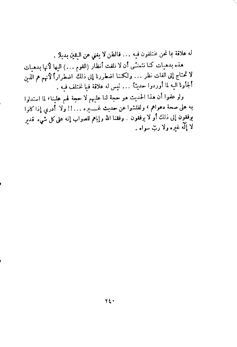 هذه بدهيات كنا نتمنى أن لا نلفت أنظار (القوم ... ) إليها لأنها بدهيات لا تحتاج إلى الفات نظر ... ولكننا اضطررنا لأنهم هم الذين ألجأونا إليه لما أوردوا حديثاً ليس له علاقة فيما نختلف فيه.
