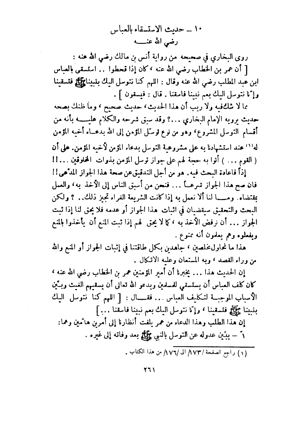 1 - يبين عدوله عن التوسل بالنبي - صلى الله عليه وسلم - بعد وفاته إلى غيره.