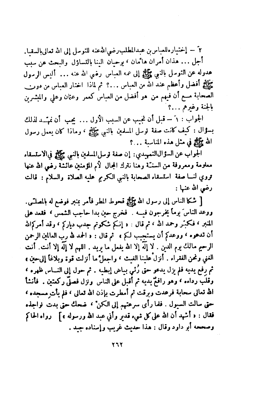2 - اختياره للعباس بن عبد المطلب - رضي الله عنه - للتوسل إلى الله تعالى بالسقيا.
