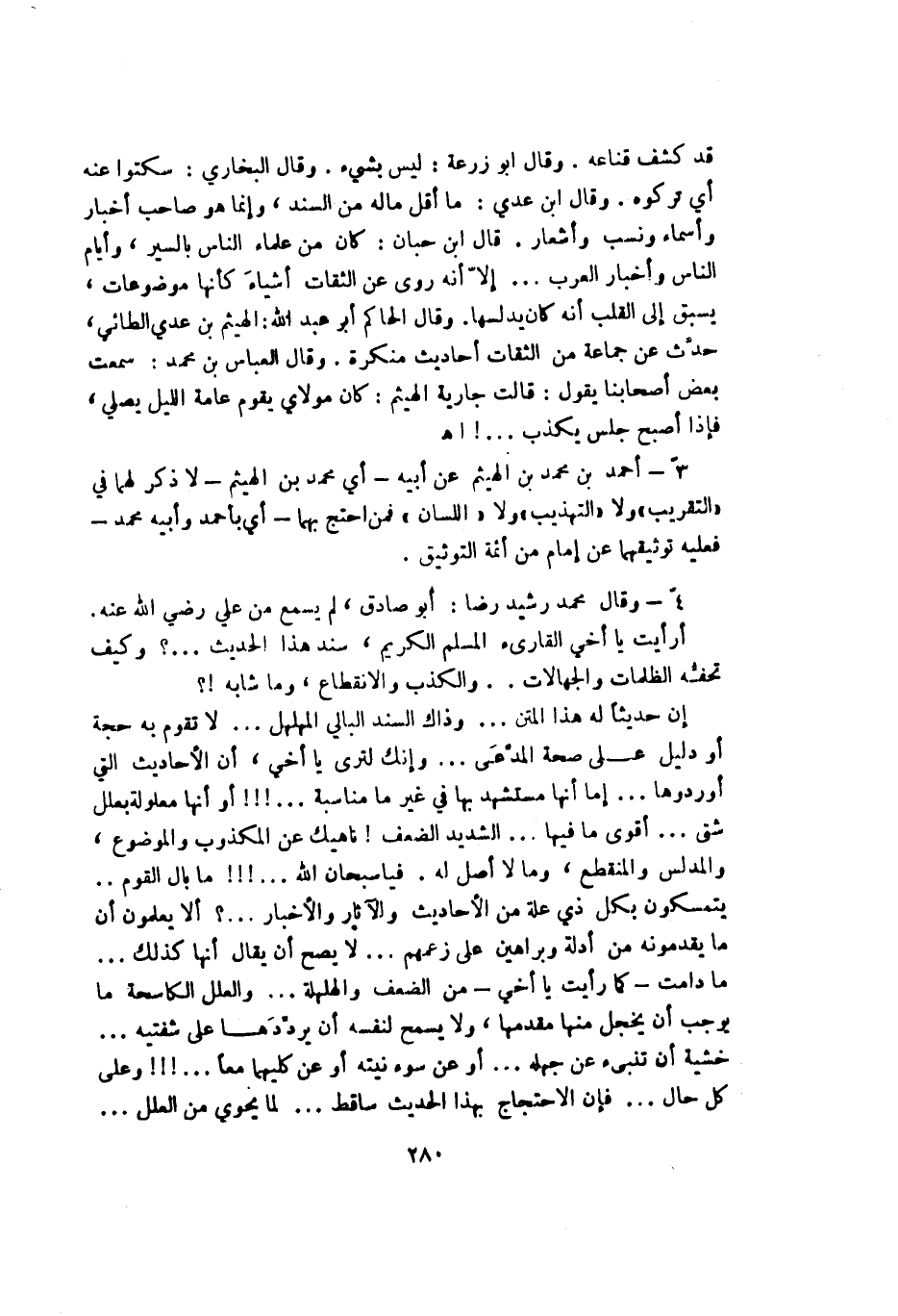 4 - وقال محمد رشيد رضا: أبو صادق، لم يسمع من على - رضي الله عنه - أرأيت يا أخي القارئ المسلم الكريم، سند هذا الحديث ... .. ؟ وكيف تحفه الظلمات والجهالات ... والكذب والانقطاع، وما شابه!؟.