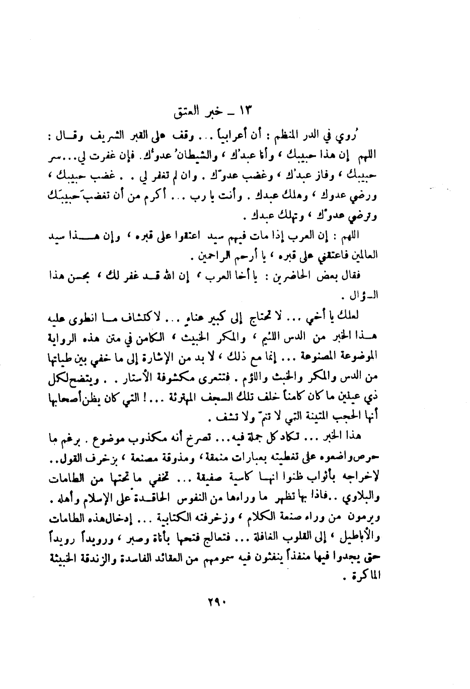 هذا الخبر ... تكاد كل جملة فيه ... تصرخ أنه مكذوب موضوع. برغم ما حرص واضعوه على تغطية بعبارات مننقة، ومذوقة مصنعة، بزخرف القول ... لإخراجه بأثواب ظنوا أنها كاسية صفيقة ... تخفى ما تحتها من الطامات والبلاوى .. فإذا لم تظهر ما وراءها من النفوس الحاقدة على الإسلام وأهله. ويرمون من وراء صنعه الكلام وزخرفته الكتابية ... إدخال هذه الطامات والأباطيل، إلى القلوب الغافلة .. فتعالج فتحها بأناة وصبر، ورويداً رويداً حتى يجدوا فيها منفذاً ينفثون فيه سمومهم من العقائد والزندقة الخبيثة الماكرة.