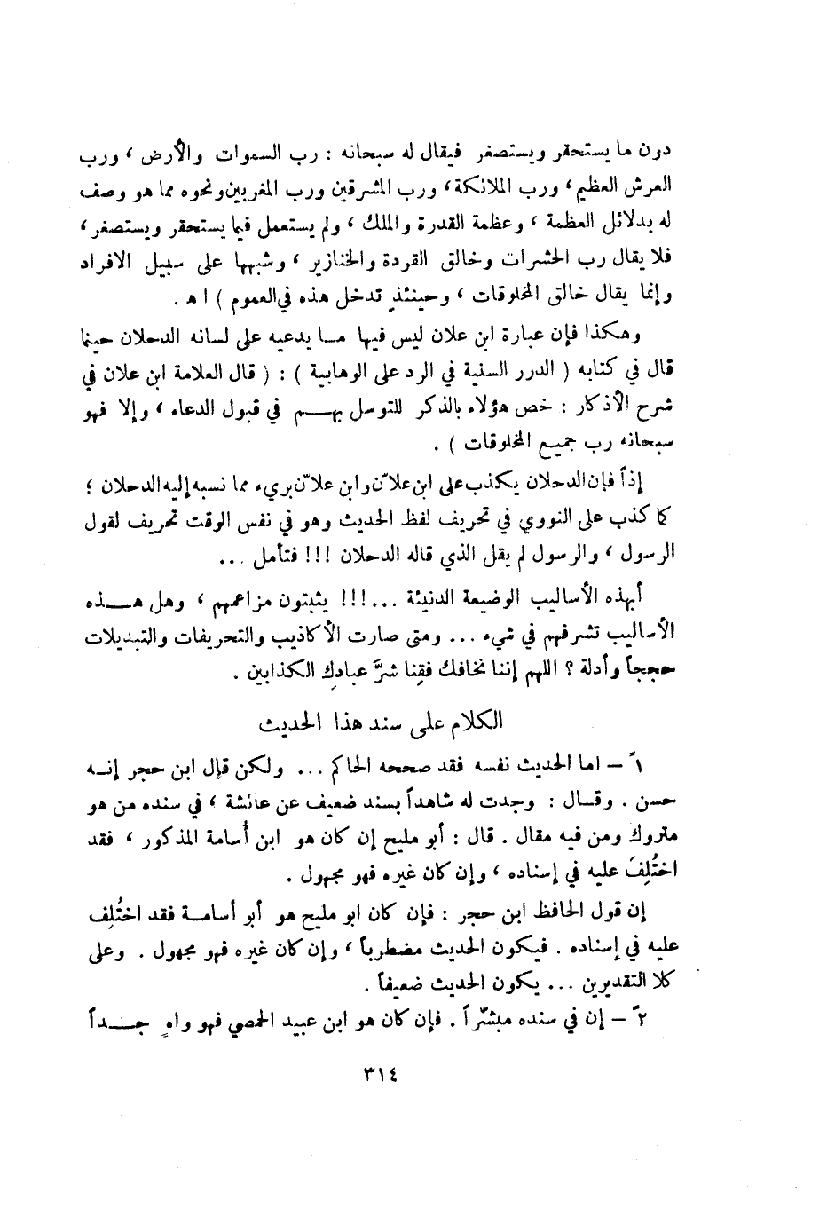 وهكذا فإن عبارة ابن علان ليس فيها ما يدعيه على لسان الدحلان حينما قال في كتابه (الدرر السنية في الرد على الوهابية): (قال العلامة ابن علان في شرح الأذكار: خص هؤلاء بالذكر للتوسل بهم في قبول الدعاء وإلا فهو سبحانه رب جميع المخلوقات).