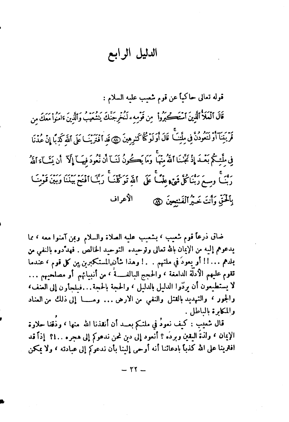 قال الملأ الذين استكبروا من قومه لنخرجنك يا شعيب والذين ءآمنوا معك من قريتنا أو لتعودن في ملتنا قال أو لو كنا كارهين * قد افترينا على الله كذباً إن عدنا في ملتكم بعد إذ أنجانا الله منها وما يكون لنا أن نعود فيها إلا أن يشاء الله ربنا وسع ربنا كل شيء علما على الله توكلنا ربنا افتح بيننا وبين قومنا بالحق وأنت خير الفاتحين * ... الأعراف 88 - 89