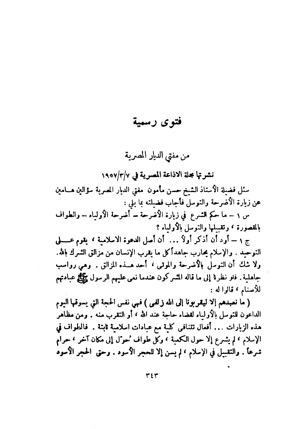 سئل فضيلة الأستاذ الشيخ حسن مأمون مفتي الديار المصرية سؤالين هامين عن زيارة الأضرحة والتوسل فأجاب فضيلته بما يلي: