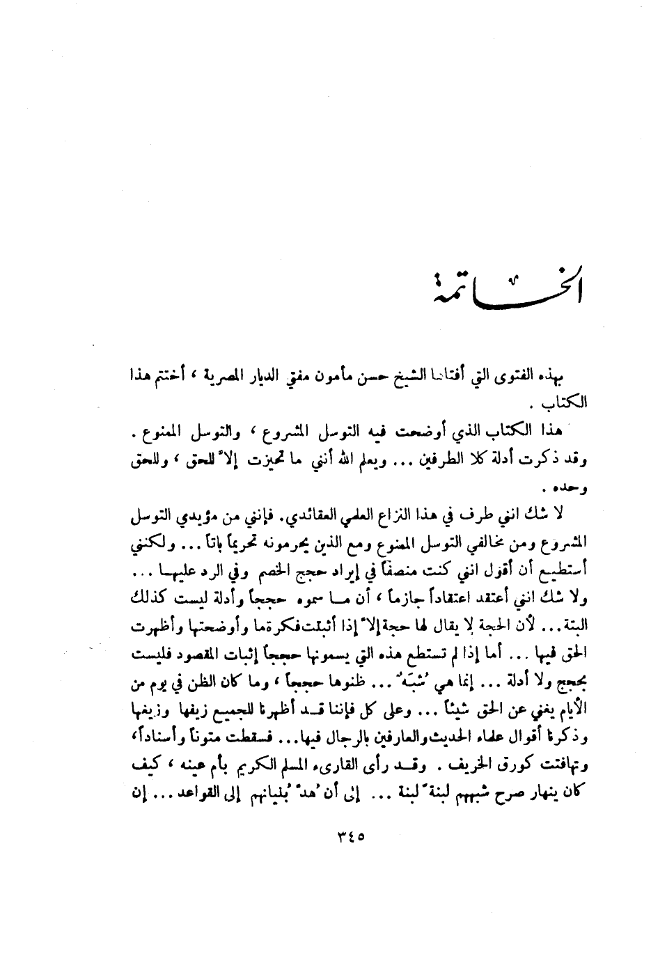 بهذه الفتوى التي أفتاها الشيخ حسن مأمون مفتي الديار المصرية أختتم هذا الكتاب.