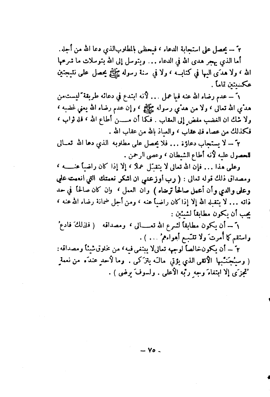 1 - أن يكون مطابقاً لشرع الله تعالى ومصداقه (فلذلك فادع واستقم كما أمرت ولا تتبع أهواءهم ... ).