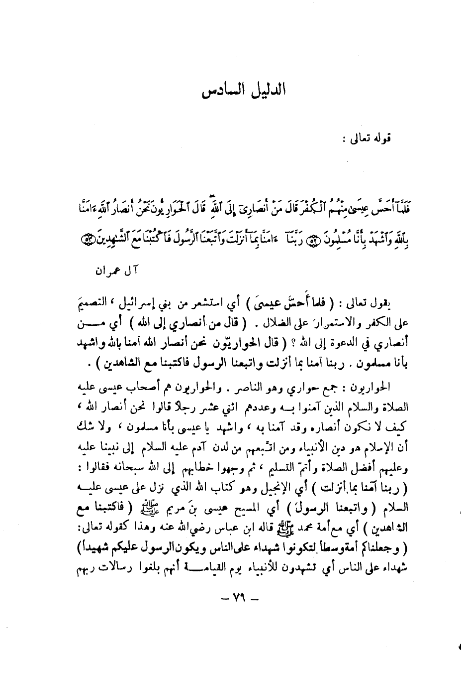 يقول تعالى: (فلما أحس عيسى) أي استشعر من بني إسرائيل التصميم على الكفر والاستمرار على الضلال. (قال من أنصاري إلى الله) أي من أنصاري في الدعوة إلى الله؟ (قال الحواريون نحن أنصار الله آمنا بالله واشهد بأنا مسلمون ربنا آمنا بما أنزلت واتبعنا الرسول فاكتبنا مع الشاهدين).