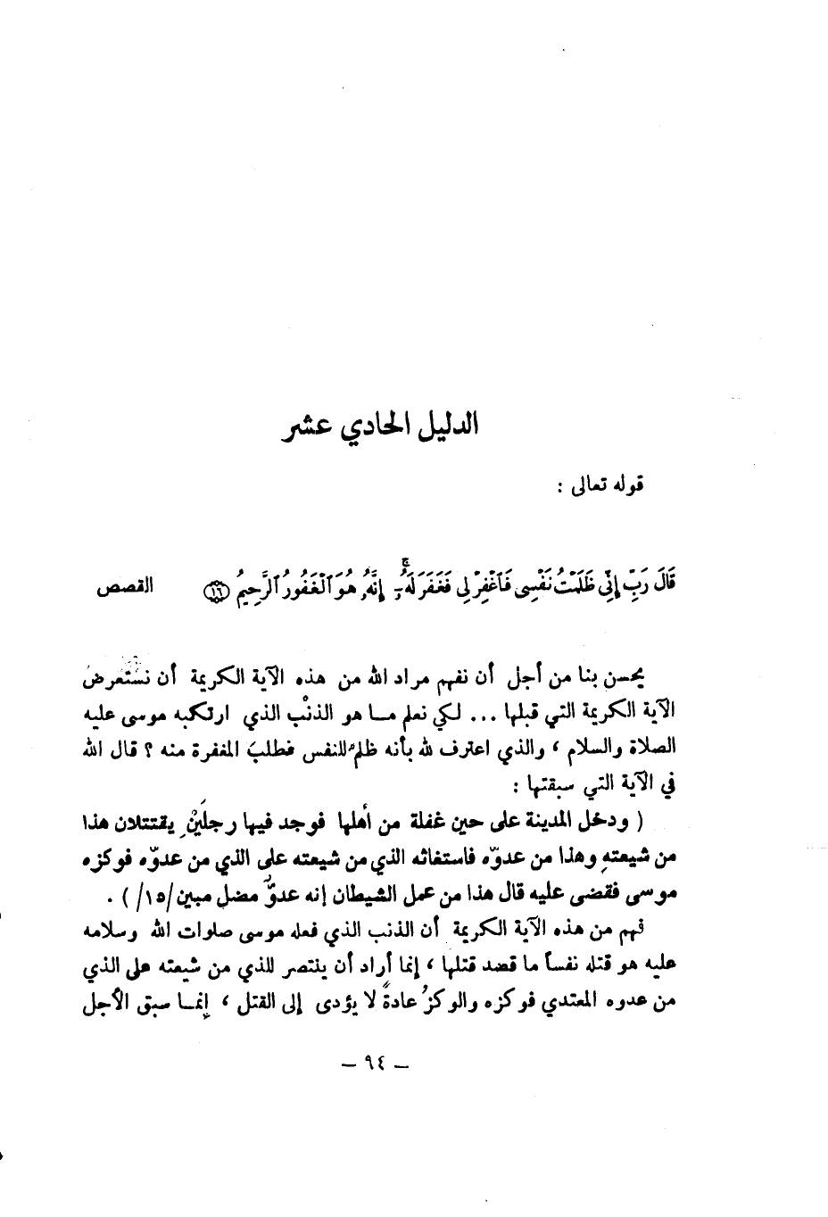 (ودخل المدينة على حين غفلة من أهلها فوجد فيها رجلين يقتتلان هذا من شيعته وهذا من عدوه فاستغاثه الذي من شيعته على الذي من عدوه فوكزه موسى فقضى عليه قال هذا من عمل الشيطان إنه عدو مضل مبين /15/).