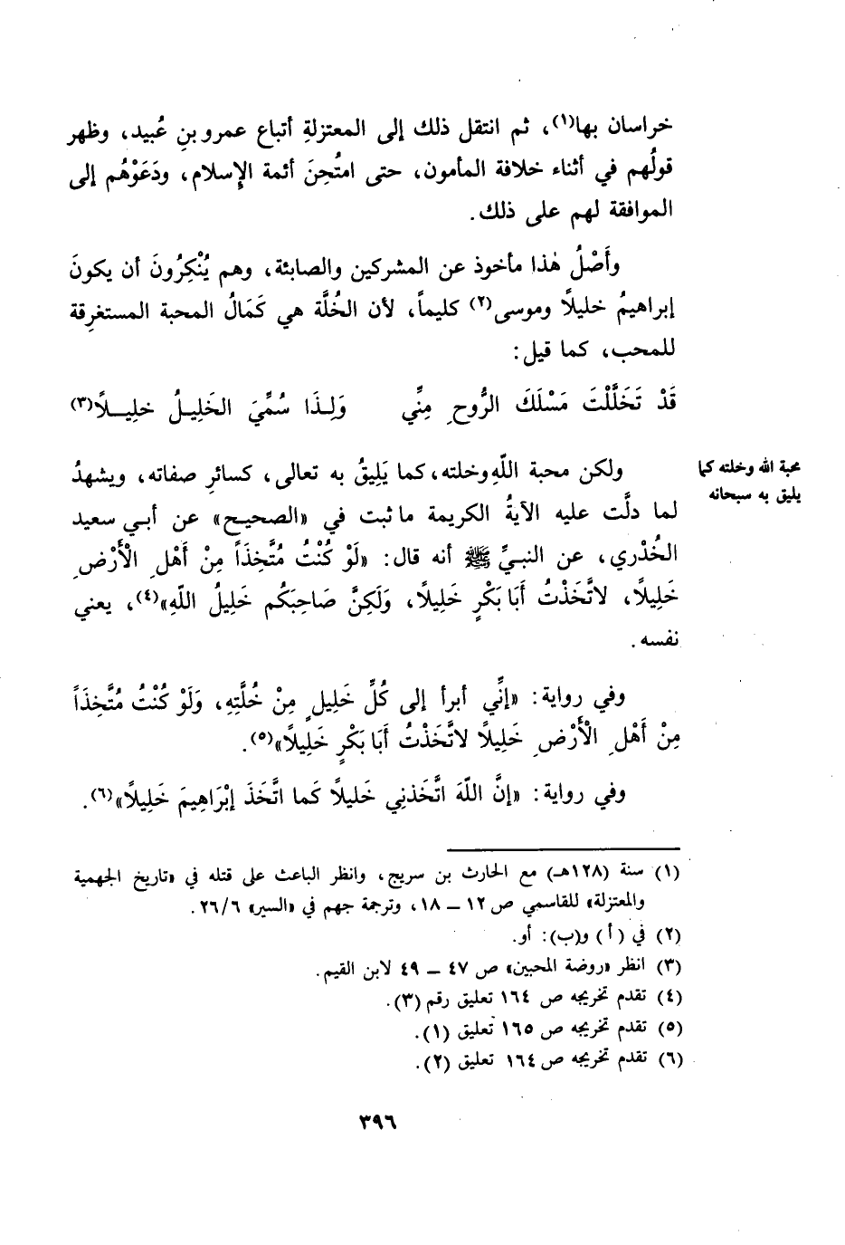 وَأَصْلُ هَذَا مَأْخُوذٌ عَنِ الْمُشْرِكِينَ وَالصَّابِئَةِ، وَهُمْ يُنْكِرُونَ أَنْ يَكُونَ إِبْرَاهِيمُ خَلِيلًا وَمُوسَى كَلِيمًا، لِأَنَّ الْخُلَّةَ هِيَ كَمَالُ الْمَحَبَّةِ الْمُسْتَغْرِقَةِ لِلْمُحِبِّ، كَمَا قِيلَ: