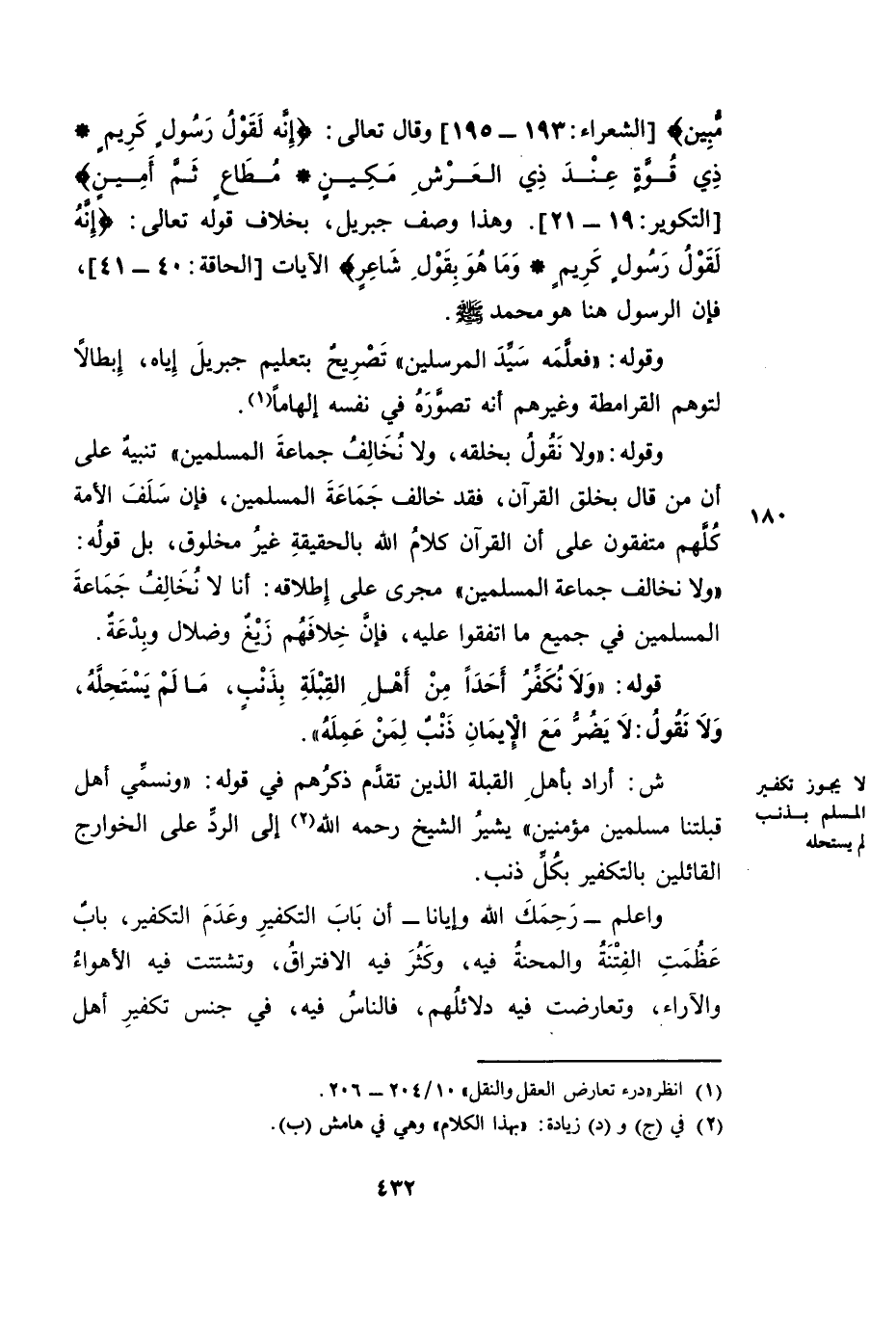 وَاعْلَمْ - رَحِمَكَ اللَّهُ وَإِيَّانَا - أَنَّ بَابَ التَّكْفِيرِ وَعَدَمِ التَّكْفِيرِ، بَابٌ عَظُمَتِ الْفِتْنَةُ وَالْمِحْنَةُ فِيهِ، وَكَثُرَ فِيهِ الِافْتِرَاقُ، وَتَشَتَّتَتْ فِيهِ الْأَهْوَاءُ وَالْآرَاءُ، وَتَعَارَضَتْ فِيهِ دَلَائِلُهُمْ. فَالنَّاسُ فِيهِ، فِي جِنْسِ تَكْفِيرِ أَهْلِ