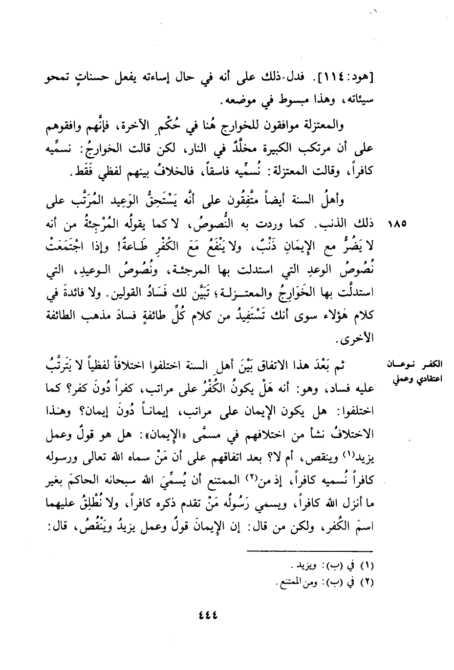 ثُمَّ بَعْدَ هَذَا الِاتِّفَاقِ بَيْنَ أَهْلِ السُّنَّةِ اخْتَلَفُوا خِلَافًا لَفْظِيًّا، لَا يَتَرَتَّبُ عَلَيْهِ فَسَادٌ، وَهُوَ: أَنَّهُ هَلْ يَكُونُ الْكُفْرُ عَلَى مَرَاتِبَ، كُفْرًا دُونَ كُفْرٍ؟ كَمَا اخْتَلَفُوا: هَلْ يَكُونُ الْإِيمَانُ عَلَى مَرَاتِبَ، إِيمَانًا دُونَ إِيمَانٍ؟ وَهَذَا اخْتِلَافٌ نَشَأَ مِنَ اخْتِلَافِهِمْ فِي مُسَمَّى الْإِيمَانِ: هَلْ هُوَ قَوْلٌ وَعَمَلٌ يَزِيدُ وَيَنْقُصُ، أَمْ لَا؟ بَعْدَ اتِّفَاقِهِمْ عَلَى أَنَّ مَنْ سَمَّاهُ اللَّهُ تَعَالَى وَرَسُولُهُ كَافِرًا نُسَمِّيهِ كَافِرًا، إِذْ مِنَ الْمُمْتَنِعِ أَنْ يُسَمِّيَ اللَّهُ سُبْحَانَهُ الْحَاكِمَ بِغَيْرِ مَا أَنْزِلَ اللَّهُ كَافِرًا، وَيُسَمِّيَ رَسُولُهُ مَنْ تَقَدَّمَ ذِكْرُهُ كَافِرًا - وَلَا نُطْلِقُ عَلَيْهِمَا اسْمَ الْكُفْرِ. وَلَكِنْ مَنْ قَالَ: إِنَّ الْإِيمَانَ قَوْلٌ وَعَمَلٌ يَزِيدُ وَيَنْقُصُ، قَالَ: