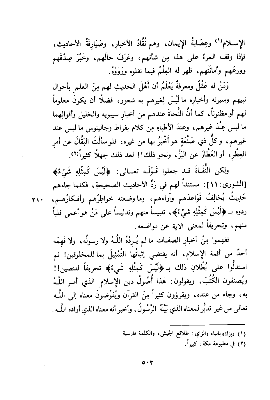 وَلَكِنَّ النُّفَاةَ قَدْ جَعَلُوا قَوْلَهُ تَعَالَى: {لَيْسَ كَمِثْلِهِ شَيْءٌ} [الشُّورَى: 11] : مُسْتَنَدًا لَهُمْ فِي رَدِّ الْأَحَادِيثِ الصَّحِيحَةِ، فَكُلَّمَا جَاءَهُمْ حَدِيثٌ يُخَالِفُ قَوَاعِدَهُمْ وَآرَاءَهُمْ، وَمَا وَضَعَتْهُ خَوَاطِرُهُمْ وَأَفْكَارُهُمْ - رَدُّوهُ بِـ " {لَيْسَ كَمِثْلِهِ شَيْءٌ} [الشورى: 11] تَلْبِيسًا مِنْهُمْ وَتَدْلِيسًا عَلَى مَنْ هُوَ أَعْمَى قَلْبًا مِنْهُمْ، وَتَحْرِيفًا لِمَعْنَى الْآيِ عَنْ مَوَاضِعِهِ.
