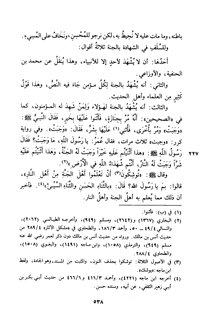 وَلِلسَّلَفِ فِي الشَّهَادَةِ بِالْجَنَّةِ ثَلَاثَةُ أَقْوَالٍ: