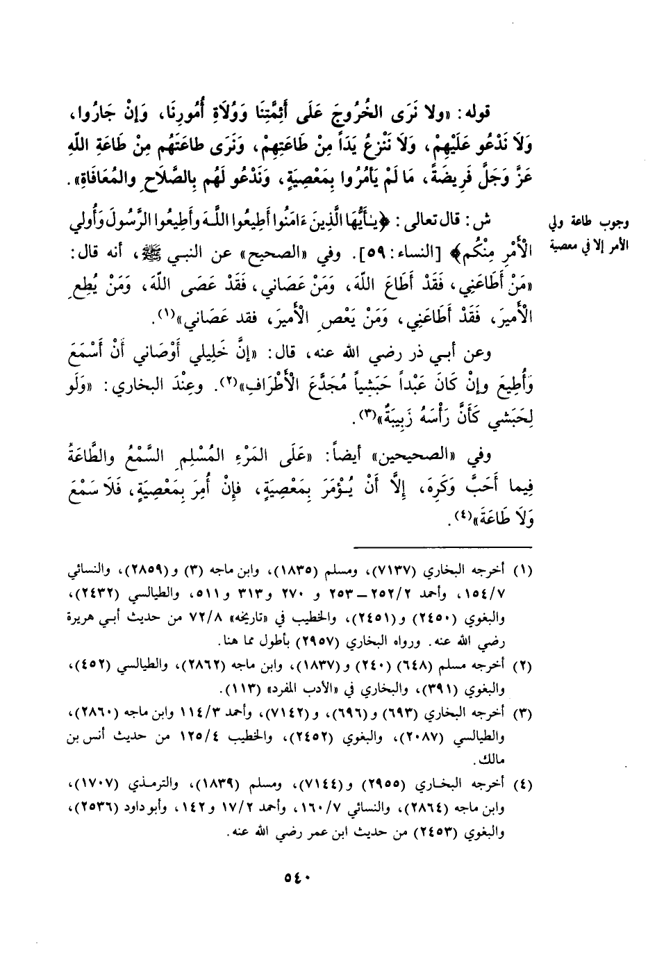 [وُجُوبُ طَاعَةِ وَلِيِّ الْأَمْرِ إِلَّا فِي مَعْصِيَةٍ]