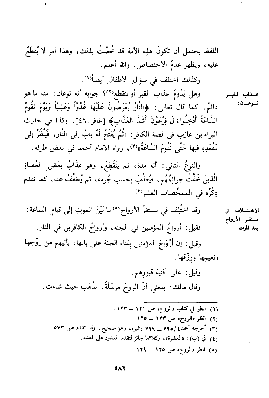 وَقَدِ اخْتُلِفَ فِي مُسْتَقَرِّ الْأَرْوَاحِ مَا بَيْنَ الْمَوْتِ إِلَى قِيَامِ السَّاعَةِ: