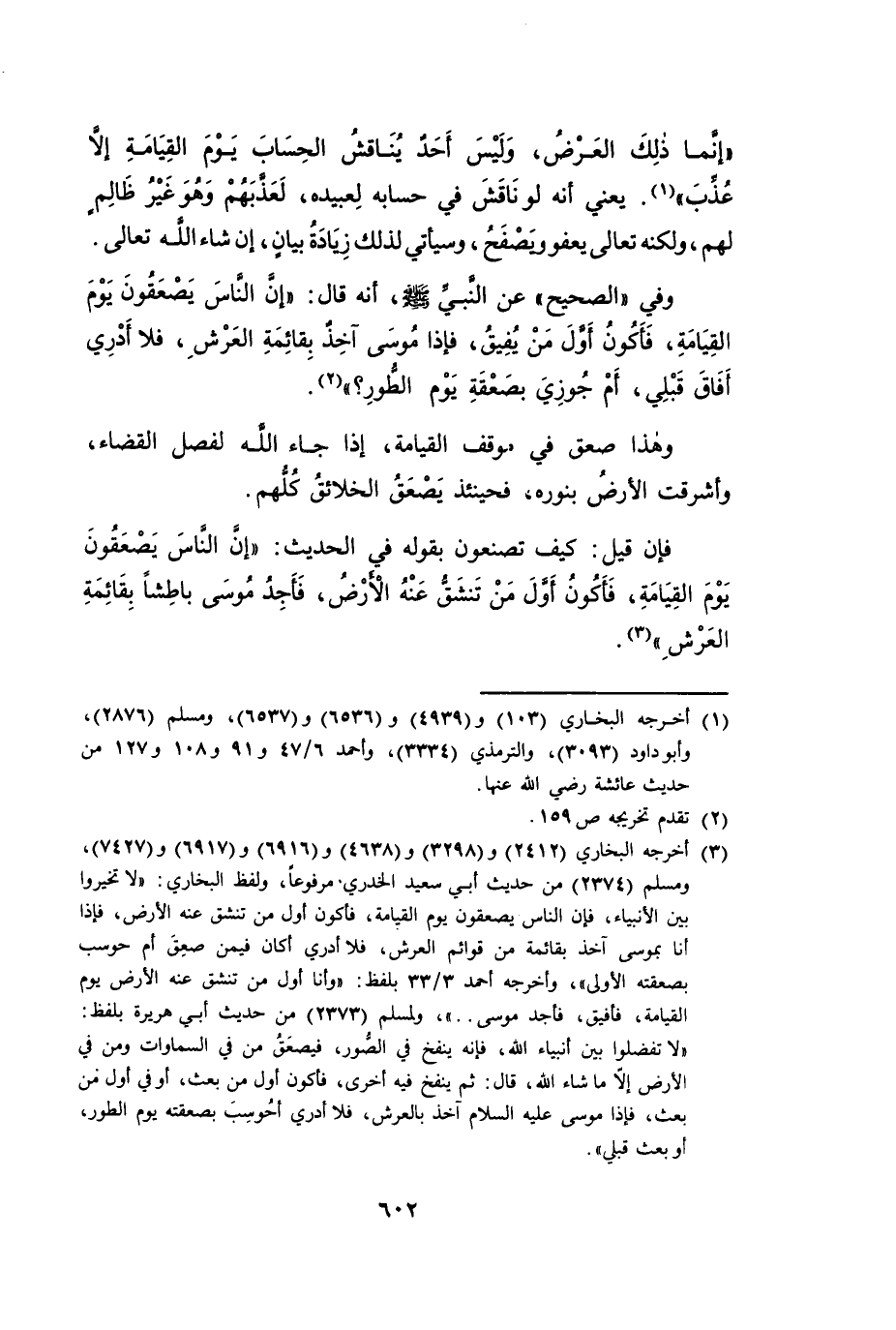 وَفِي الصَّحِيحِ عَنِ النَّبِيِّ صَلَّى اللَّهُ عَلَيْهِ وَسَلَّمَ، أَنَّهُ قَالَ: «إِنَّ النَّاسَ يُصْعَقُونَ يَوْمَ الْقِيَامَةِ، فَأَكُونُ أَوَّلَ مَنْ يُفِيقُ، فَإِذَا مُوسَى آخِذٌ بِقَائِمَةِ الْعَرْشِ، فَلَا أَدْرِي أَفَاقَ قَبْلِي، أَمْ جُوزِيَ بِصَعْقَةِ يَوْمِ الطُّورِ؟»