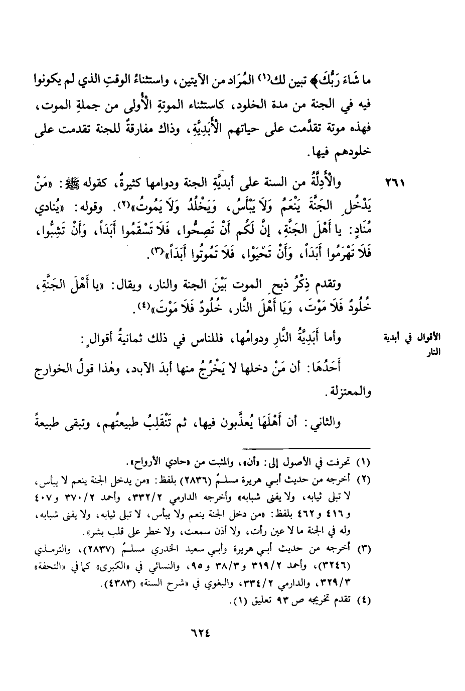 وَأَمَّا أَبَدِيَّةُ النَّارِ وَدَوَامُهَا، فَلِلنَّاسِ فِي ذَلِكَ ثَمَانِيَةُ أَقْوَالٍ: