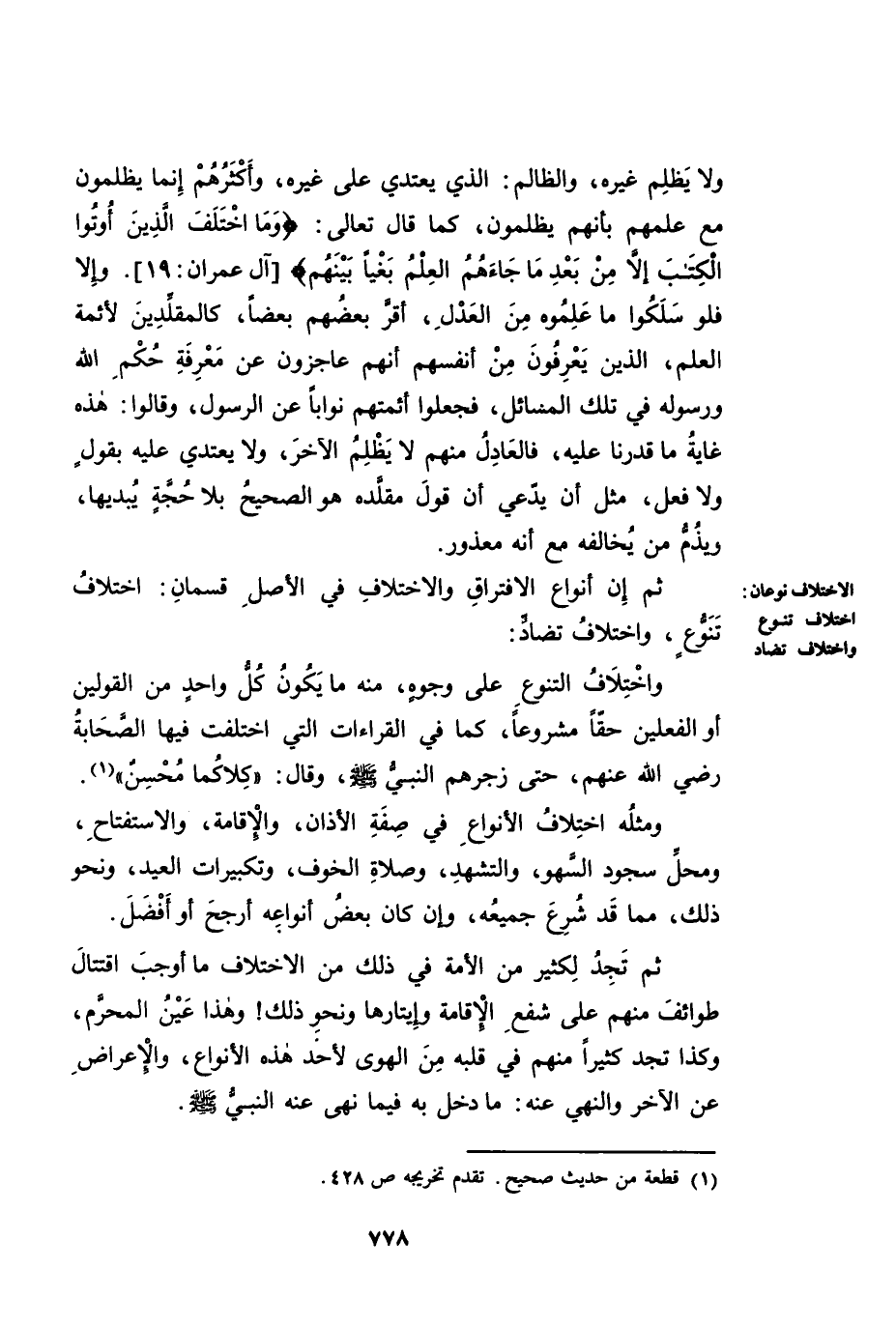 [الِاخْتِلَافُ نَوْعَانِ اخْتِلَافُ تَنَوُّعٍ وَاخْتِلَافُ تَضَادٍّ]