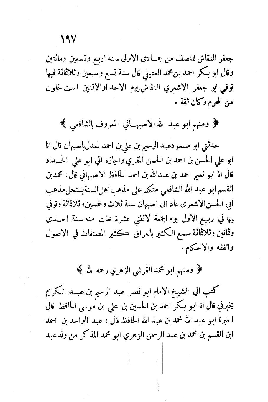 وَمِنْهُم أَبُو عبد الله الْأَصْبَهَانِيّ الْمَعْرُوف بالشافعي