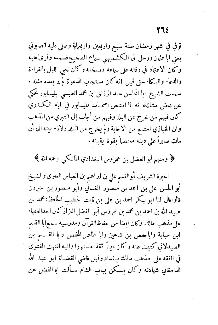 وَمِنْهُم أَبُو الْفضل بن عمروس الْبَغْدَادِيّ الْمَالِكِي رَحمَه اللَّه