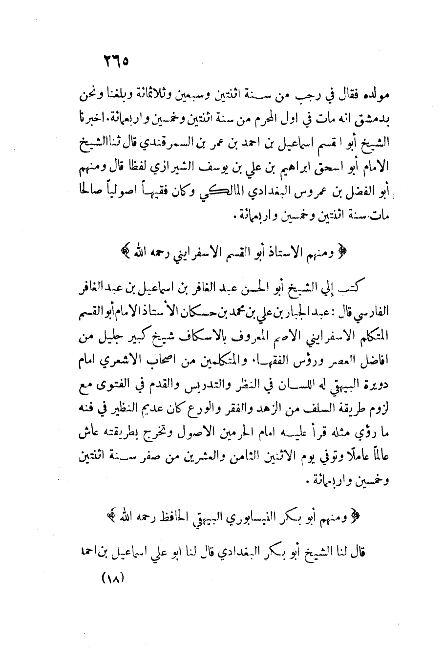 وَمِنْهُم الْأُسْتَاذ أَبُو الْقسم الإسفرايني رَحمَه اللَّه