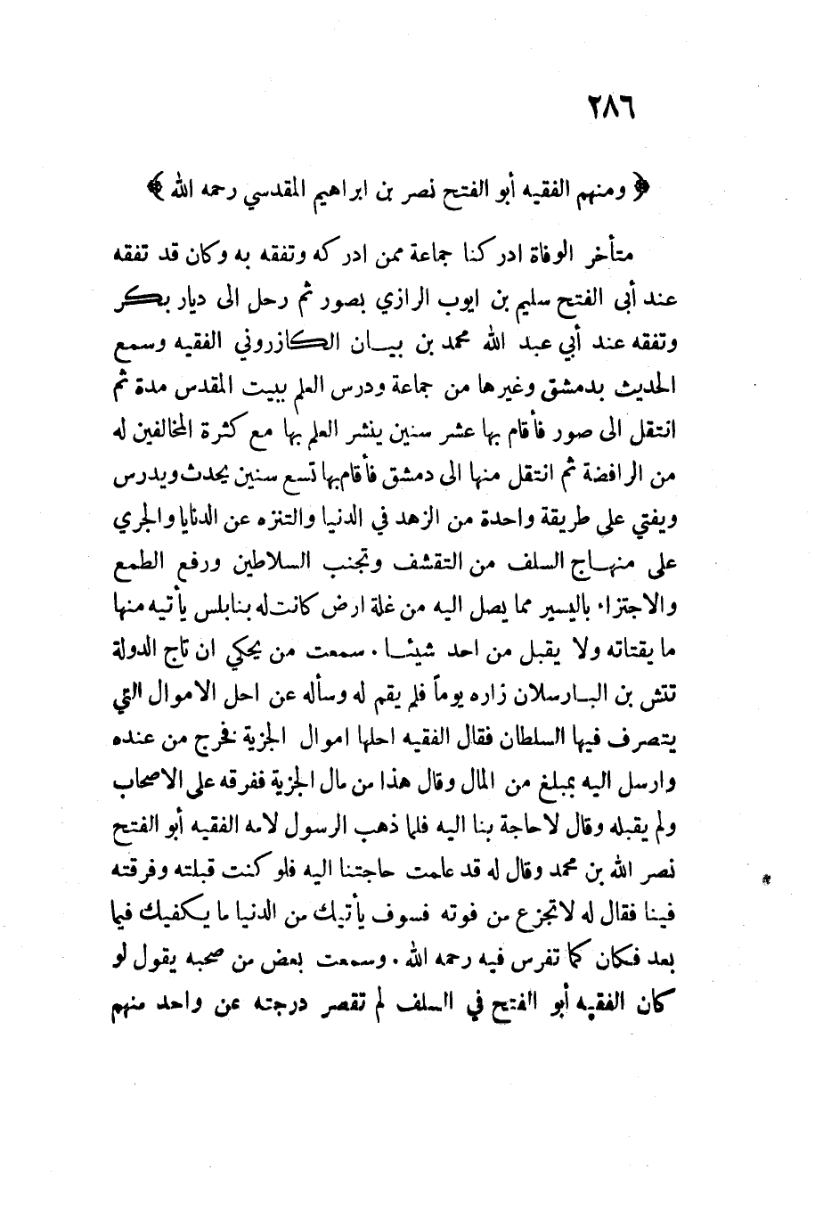 وَمِنْهُم الْفَقِيه أَبُو الْفَتْحِ نصر بن إِبْرَاهِيمَ الْمَقْدِسِي رَحمَه اللَّه