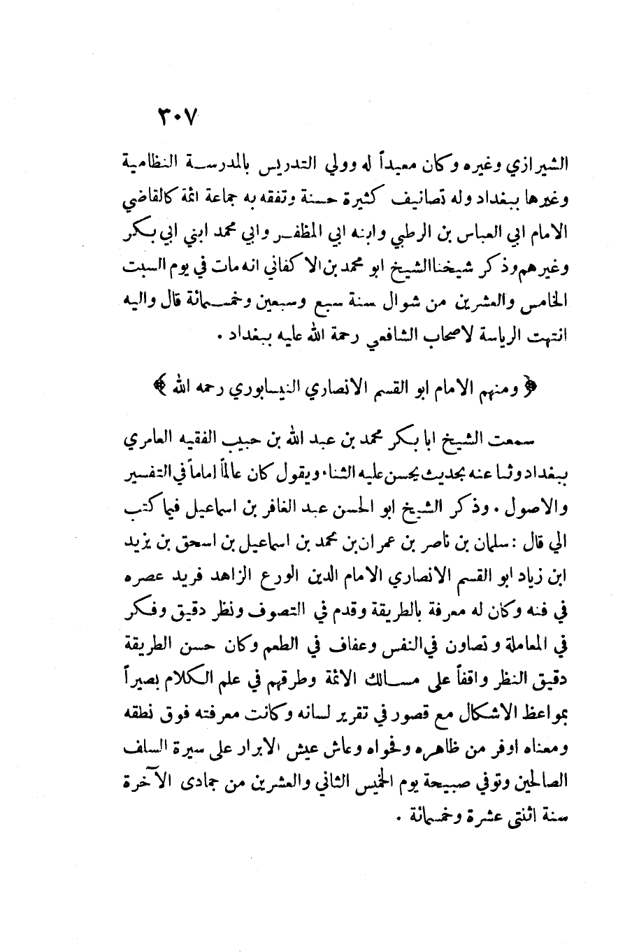 وَمِنْهُم الإِمَام أَبُو الْقسم الْأنْصَارِيّ النَّيْسَابُورِي رَحمَه اللَّه