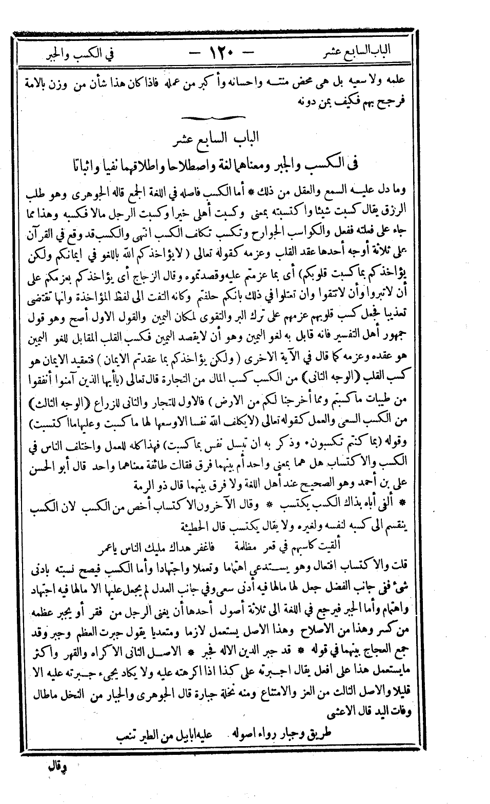 الباب السابع عشر: في الكسب والجبر ومعناهما لغة واصطلاحا وإطلاقهما نفيا وإثباتا