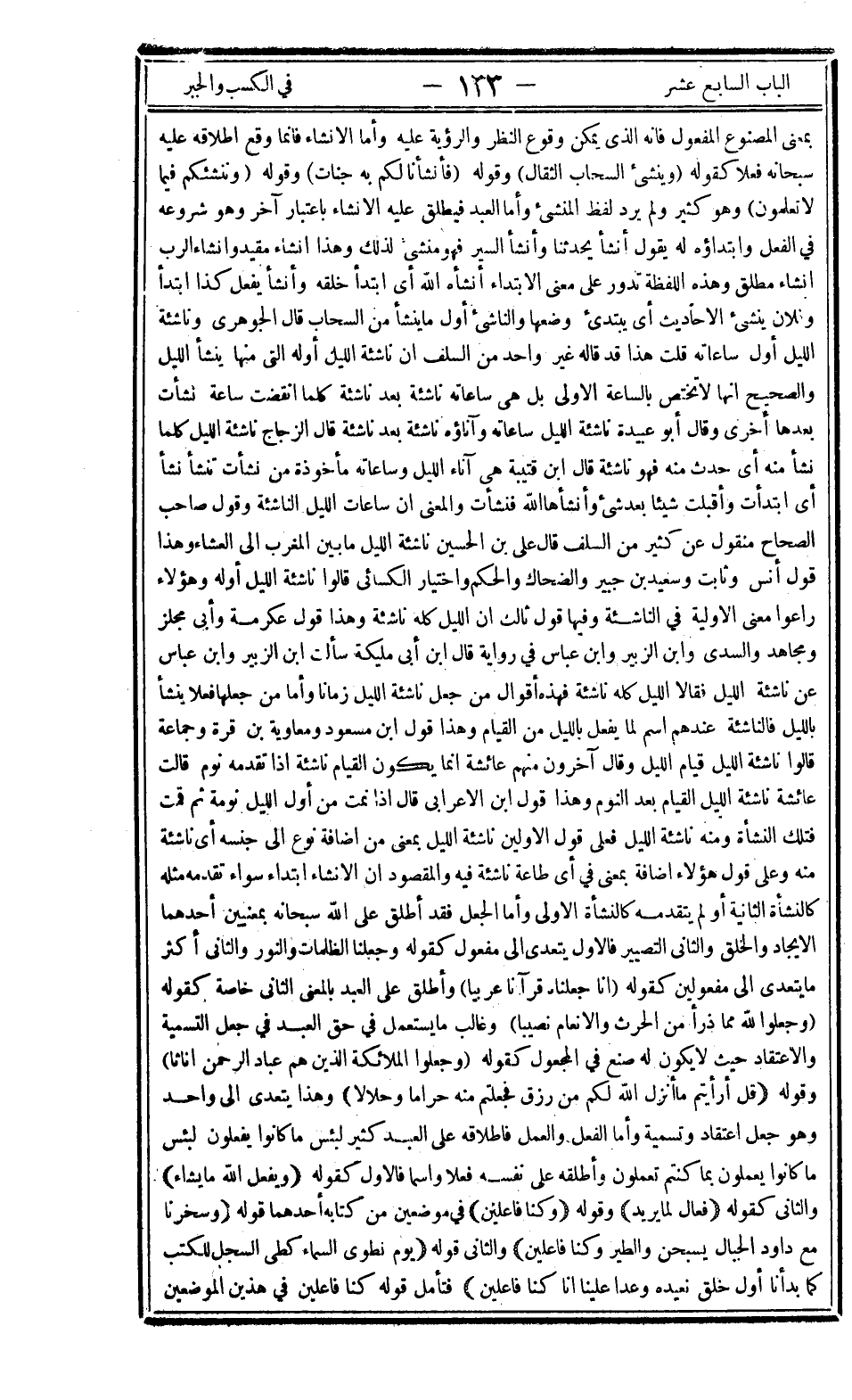 بمعنى المصنوع المفعول فإنه الذي يمكن وقوع النظر والرؤية عليه وأما الإنشاء فإنما وقع إطلاقه عليه سبحانه فعلا كقوله: {وَيُنْشِئُ السَّحَابَ الثِّقَالَ} وقوله: {فَأَنْشَأْنَا لَكُمْ بِهِ جَنَّاتٍ} وقوله: {وَنُنْشِئَكُمْ فِي مَا لا تَعْلَمُونَ} وهو كثير ولم يرد لفظ المنشئ وأما العبد فيطلق عليه الإنشاء باعتبار آخر وهو شروعه في الفعل وابتداؤه له يقول أنشأ يحدثنا وأنشأ السير فهو منشأ لذلك وهذا إنشاء مقيد وإنشاء الرب إنشاء مطلق وهذه اللفظة تدور على معنى الابتداء أنشأه الله أي ابتدأ خلقه وأنشأ يفعل كذا ابتداء وفلان ينشئ الأحاديث أي يبتدئ وضعها والناشئ أول ما ينشأ من السحاب قال الجوهري: "وناشئة الليل أول ساعاته" قلت هذا قد قاله غير واحد من السلف إن ناشئة الليل أوله التي منها ينشأ الليل والصحيح أنها لا تختص بالساعة الأولى بل هي ساعاته ناشئة بعد ناشئة كلما انقضت ساعة نشأت بعدها أخرى وقال أبو عبيدة: "ناشئة الليل ساعاته وآناؤه ناشئة بعد ناشئة" قال الزجاج: "ناشئة الليل كلما نشأ منه أي حدث منه فهو ناشئة" قال ابن قتيبة: "هي آناء الليل وساعاته" مأخوذة من نشأت تنشأ نشأ أي ابتدأت وأقبلت شيئا بعد شيء وأنشأها الله فنشأت والمعنى أن ساعات الليل الناشئة وقول صاحب الصحاح منقول عن كثير من السلف قال علي بن الحسين: "ناشئة الليل ما بين المغرب إلى العشاء" وهذا قول أنس وثابت وسعيد بن جبير والضحاك والحكم واختيار الكسائي قالوا: "ناشئة الليل أوله" وهؤلاء راعوا معنى الأولية في الناشة وفيها قول ثالث أن الليل كله ناشئة وهذا قول عكرمة وأبي مجلز ومجاهد والسدي وابن الزبير وابن عباس في رواية قال ابن أبي مليكة سألت ابن الزبير وابن عباس عن ناشئة الليل فقالا: "الليل كله ناشئة" فهذه أقوال من جعل ناشئة الليل زمانا وأما من جعلها فعلا ينشأ بالليل فالناشئة عندهم اسم لما يفعل بالليل من القيام وهذا قول ابن مسعود ومعاوية بن قرة وجماعة قالوا: "ناشئة الليل قيام الليل" وقال آخرون منهم عائشة إنما يكون القيام ناشئة إذا تقدمه نوم قالت عائشة: "ناشئة الليل القيام بعد النوم" وهذا قول ابن الأعرابي قال: "إذا نمت من أول الليل نومة ثم قمت فتلك النشأة" ومنه ناشئة الليل فعلى قول الأولين ناشئة الليل بمعنى من إضافة نوع إلى جنسه أي ناشئة منه وعلى قول هؤلاء إضافة بمعنى في أي طاعة ناشئة فيه والمقصود أن الإنشاء ابتداء سواء تقدمه مثله كالنشأة الثانية أو لم يتقدمه كالنشأة الأولى وأما الجعل فقد أطلق على الله سبحانه بمعنيين أحدهما: الإيجاد والخلق والثاني: التصيير فالأول يتعدى إلى مفعول كقوله وجعلنا الظلمات والنور والثاني: أكثر ما يتعدى إلى مفعولين كقوله: {إِنَّا جَعَلْنَاهُ قُرْآناً عَرَبِيّاً} وأطلق على العبد بالمعنى الثاني خاصة كقوله: {وَجَعَلُوا لِلَّهِ مِمَّا ذَرَأَ مِنَ الْحَرْثِ وَالْأَنْعَامِ نَصِيباً} وغالب ما يستعمل في حق العبد في جعل التسمية والاعتقاد حيث لا يكون له صنع في المجعول كقوله: {وَجَعَلُوا الْمَلائِكَةَ الَّذِينَ هُمْ عِبَادُ الرَّحْمَنِ إِنَاثاً} وقوله: {قُلْ أَرَأَيْتُمْ مَا أَنْزَلَ اللَّهُ لَكُمْ مِنْ رِزْقٍ فَجَعَلْتُمْ مِنْهُ حَرَاماً وَحَلالاً} وهذا يتعدى إلى واحد وهو جعل اعتقاد وتسمية وأما الفعل والعمل فإطلاقه على العبد كثير: {لَبِئْسَ مَا كَانُوا يَفْعَلُونَ} : {لَبِئْسَ مَا كَانُوا يَعْمَلُونَ} : {بِمَا كُنْتُمْ تَعْمَلُونَ} وأطلقه على نفسه فعلا واسما فالأول كقوله: {وَيَفْعَلُ اللَّهُ مَا يَشَاءُ} والثاني كقوله: {فَعَّالٌ لِمَا يُرِيدُ} وقوله: {وَكُنَّا فَاعِلِينَ} في موضعين من كتابه أحدهما قوله: {وَسَخَّرْنَا مَعَ دَاوُدَ الْجِبَالَ يُسَبِّحْنَ وَالطَّيْرَ وَكُنَّا فَاعِلِينَ} والثاني قوله: {يَوْمَ نَطْوِي السَّمَاءَ كَطَيِّ السِّجِلِّ لِلْكُتُبِ كَمَا بَدَأْنَا أَوَّلَ خَلْقٍ نُعِيدُهُ وَعْداً عَلَيْنَا إِنَّا كُنَّا فَاعِلِينَ} فتأمل قوله كنا فاعلين في هذين الموضعين