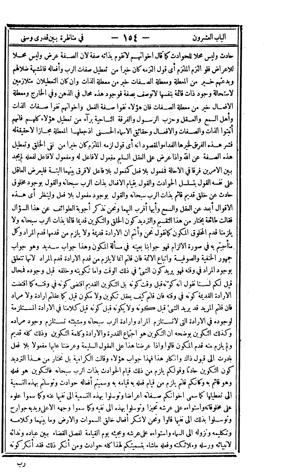 حادث وليس محلا للحوادث كما قال إخوانهم لا تقوم بذاته صفة لأن الصفة عرض وليس محلا للأعراض فلو التزم الملتزم أي قول التزمه كان خيرا من تعطيل صفات الرب وأفعاله فالمشبهة ضلالهم وبدعتهم خير من المعطلة ومعطلة الصفات خير من معطلة الذات وإن كان التعطيلان متلازمين لاستحالة وجود ذات قائمة بنفسها لا توصف بصفة فوجود هذه محال في الذهن وفي الخارج ومعطلة الأفعال خير من معطلة الصفات فإن هؤلاء نفوا صفة الفعل وإخوانهم نفوا صفات الذات وأهل السمع والعقل وحزب الرسول والفرقة الناجية برآء من تعطيل هؤلاء كلهم فإنهم أثبتوا الذات والصفات والأفعال وحقائق الأسماء الحسنى إذ جعلها المعطلة مجازا لا حقيقة له فشر هذه الفرق لخيرها الفداء والمقصود أنه أي قول لزمه الملتزم كان خيرا من نفي الخلق وتعطيل هذه الصفة عن الله وإذا عرض على العقل السليم مفعول لا فاعل له ومفعول لا فاعل لفعله لم يجد بين الأمرين فرقا في الإحالة فمفعول بلا فعل كمفعول بلا فاعل لا فرق بينهما البتة فليعرض العاقل على نفسه القول بتسلسل الحوادث والقول بقيام الأفعال بذات الرب سبحانه والقول بوجود مخلوق حادث عن خلق قديم قائم بذات الرب سبحانه والقول بوجود مفعول بلا فعل ولينظر أي هذه الأقوال أبعد عن العقل والسمع وأيها أقرب إليهما ونحن نذكر أجوبة الطوائف عن هذا السؤال فقالت طائفة يختار من هذا التقسيم والترديد كون الخلق والتكوين قديما قائما بذات الرب سبحانه ولا يلزمنا قدم المخلوق المكون كما نقول نحن وأنتم أن الإرادة قديمة ولا يلزم من قدمها قدم المراد وكل ما أجبتم به في صورة الإلزام فهو جوابنا بعينه في مسألة المكون وهذا جواب سديد وهو جواب جمهور الحنفية والصوفية وأتباع الأئمة فإن قلتم إنما لا يلزم من قدم الإرادة قدم المراد لأنها تتعلق بوجود المراد في وقته فهو يريد كون الشيء في ذلك الوقت وأما تكوينه وخلقه قبل وجوده فمحال قيل لكم لسنا نقول أنه كونه قبل وقت كونه بل التكوين القديم اقتضى كونه في وقته كما اقتضت الإرادة القديمة كونه في وقته فإن قلتم كيف يعقل تكوين ولا مكون قيل كما عقلتم إرادة ولا مراد فإن قلتم المريد قد يريد الشيء قبل كونه ولا يكونه قبل كونه قيل كلامنا في الإرادة المستلزمة لوجوده في الإرادة التي لا تستلزم المراد وإرادة الرب سبحانه ومشيئته تستلزم وجود مراده وكذلك التكوين يوضحه أن التكوين هو اجتماع القدرة والإرادة وكلمة التكوين وذلك كله قديم ولم يلزم منه قدم المكون قالوا وإذا عرضنا هذا على العقول السليمة وعرضنا عليها مفعولا بلا فعل بادرت إلى قبول ذاك وإنكار هذا فهذا جواب هؤلاء وقالت الكرامية بل نختار من هذا الترديد كون التكوين حادثا وقولكم يلزم من ذلك قيام الحوادث بذات الرب سبحانه فالتكوين هو فعله وهو قائم به وكأنكم قلتم يلزم من قيام فعله به قيامه به وسميتم أفعاله حوادث وتوسلتم بهذه التسمية إلى تعطيلها كما سمى إخوانكم صفاته إعراضا وتوسلوا بهذه التسمية إلى نفيها عنه وكما سموا علوه على مخلوقاته واستواءه على عرشه تحيزا وتوسلوا بهذه إلى نفيه وكما سموا وجهه الأعلى ويديه جوارح وتوسلوا بذلك إلى نفيها قالوا ونحن لا ننكر أفعال خالق السماوات والأرض وما بينهما وكلامه وتكليمه ونزوله إلى السماء واستواءه على عرشه ومجيئه يوم القيامة لفصل القضاء بين عباده وندائه لأنبيائه ورسله وملائكته وفعله ما شاء بتسميتكم لهذا كله حوادث ومن أنكر ذلك فقد أنكر كونه