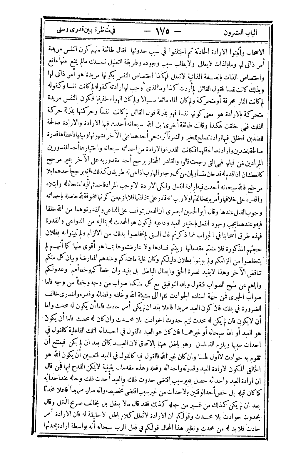 الأصحاب وأثبتوا الإرادة الحادثة ثم اختلفوا في سبب حدوثها فقال طائفة منهم كون النفس مريدة أمر ذاتي لها وما بالذات لا يعلل ولا يطلب سبب وجوده وطريقة التعليل تسلك ما لم يمنع منها مانع واختصاص الذات بالصفة الذاتية لا تعلل فهكذا اختصاص النفس بكونها مريدة هو أمر ذاتي لها وبذلك كانت نفسا فقول القائل لم أردت كذا وما الذي أوجب لها إرادته كقوله لم كانت نفسا وكقوله لم كانت النار محرقة أو متحركة ولم كان الماء مائعا سيالا ولم كان الهواء خفيفا فكون النفس مريدة متحركة بالإرادة هو معنى كونها نفسا فهو بمنزلة قول القائل لم كانت نفسا وحركتها بمنزلة حركة الفلك فهي خلقت هكذا وقالت طائفة أخرى بل الله سبحانه أحدث فيها الإرادة والإرادة صالحة للضدين فخلق فيها إرادة تصلح للخير فآثرت أحدهما على ألآخر بشهوتها وميلها فأعطاها قدرة صالحة للضدين وإرادة صالحة لها فكانت القدرة والإرادة من إحداثه سبحانه واختيارها أحد المقدورين المرادين من قبلها فهي التي رجحته قالوا والقادر المختار يرجح أحد مقدوريه على الآخر بغير مرجح كالعطشان إذا قدم له قدحان متساويان من كل وجه والهارب إذا عن له طريقان كذلك فإنه يرجح أحدهما بلا مرجح فالله سبحانه أحدث فيه إرادة الفعل ولكن الإرادة لا توجب المراد فأحدثها فيه امتحانا له وابتلاء وأقدره على خلافها وأمره بمخالفتها ولا ريب أنه قادر على مخالفتها فلا يلزم من كونها مخلوقة لله حاصلة بإحداثه وجوب الفعل عندها وقال أبو الحسين البصري: "إن الفعل يتوقف على الداعي والقدرة وهما من الله خلقا فيه وعندهما يجب وجود الفعل باختيار العبد وداعيه فيكون هو المحدث له بما فيه من الدواعي والقدرة" فهذه طرق أصحابنا في الجواب عما ذكرتم قال السني: لم تتخلصوا بذلك من الإلزام ولم تبينوا به بطلان حجتهم المذكورة فلا منعتم مقدماتها وبينتم فسادها ولا عارضتموها بما هو أقوى منها كما أنهم لم يتخلصوا من إلزامكم ولم يبينوا بطلان دليلكم وكان غاية ما عندكم وعندهم المعارضة وبيان كل منكم تناقض الآخر وهذا لا يفيد نصرة الحق وإبطال الباطل بل يفيد بيان خطأكم وخطأهم وعدولكم وإياهم عن منهج الصواب فنقول وبالله التوفيق مع كل منكما صواب من وجه وخطأ من وجه فأما صواب الجبري فمن جهة إسناده الحوادث كلها إلى مشيئة الله وخلقه وقضائه وقدره والقدري خالف الضرورة في ذلك فإن كون العبد مريدا فاعلا بعد أن لم يكن أمر حادث فأما أن يكون له محدث وأما أن لا يكون فإن لم يكن له محدث لزم حدوث الحوادث بلا محدث وإن كان له محدث فأما أن يكون هو العبد أو الله سبحانه أو غيرهما فإن كان هو العبد فالقول في إحداثه لتلك الفاعلية كالقول في إحداث سببها ويلزم التسلسل وهو باطل ههنا بالاتفاق لأن العبد كائن بعد أن لم يكن فيمتنع أن تقوم به حوادث لا أول لها وإن كان غير الله فالقول فيه كالقول في العبد فتعين أن يكون الله هو الخالق المكون لإرادة العبد وقدرته وإحداثه وفعله وهذه مقدمات يقينية لا يمكن القدح فيها فمن قال إن إرادة العبد وإحداثه حصل بغير سبب اقتضى حدوث ذلك والعبد أحدث ذلك وحاله عند إحداثه كما كان قبله بل خص أحد الوقتين بالإحداث من غير سبب اقتضى تخصيصه وأنه صار مريدا فاعلا محدثا بعد أن لم يكن كذلك من غير من جعله كذلك فقد قال ما لا يعقل بل يخالف صريح العقل وقال بحدوث حوادث بلا محدث وقولكم أن الإرادة لا تعلل كلام باطل لا حقيقة له فإن الإرادة أمر حادث فلا بد له من محدث ونظير هذا المحال قولكم في فعل الرب سبحانه أنه بواسطة إرادة يحدثها