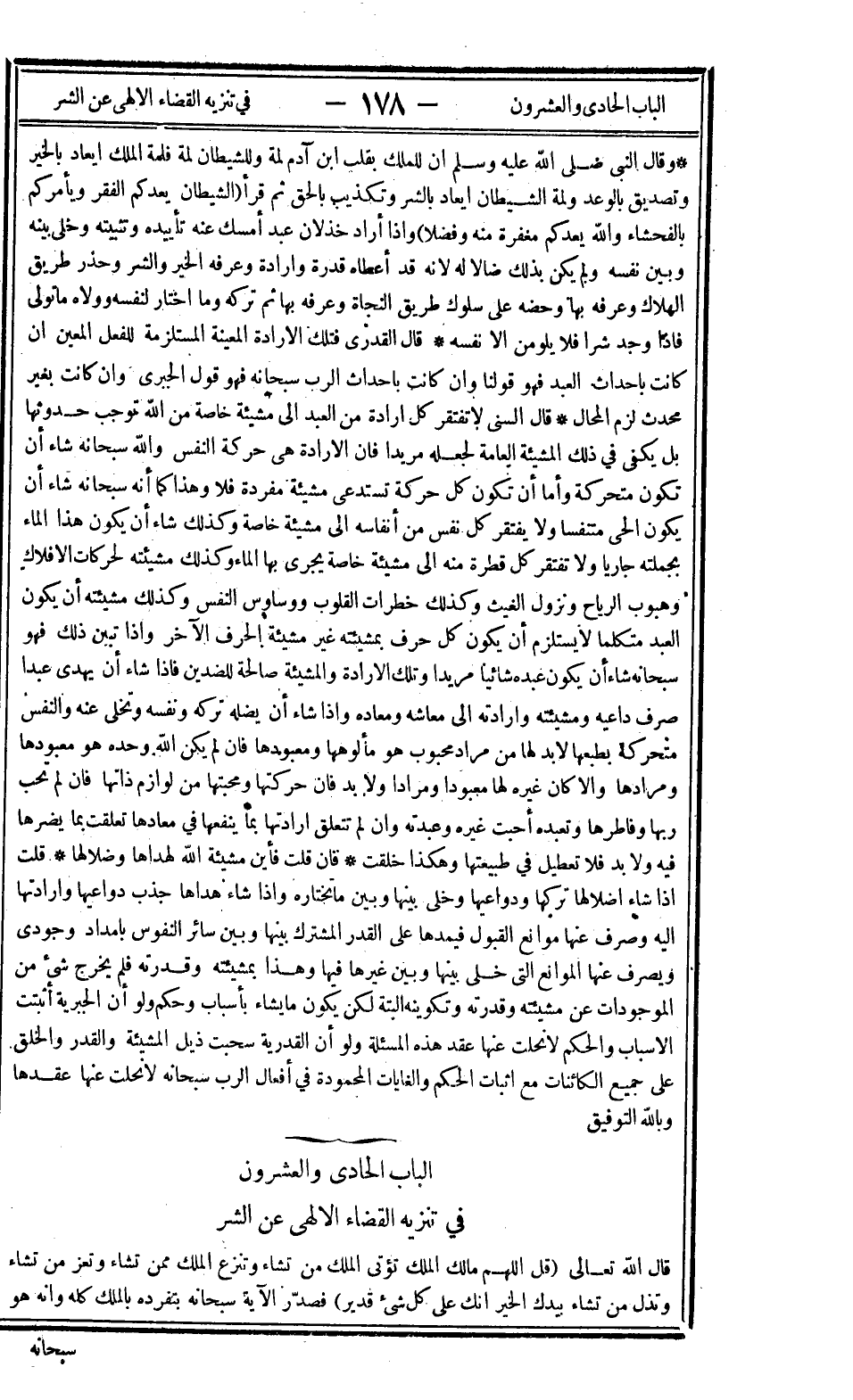 الباب الحادي والعشرون: في تنزيه القضاء الإلهي عن الشر