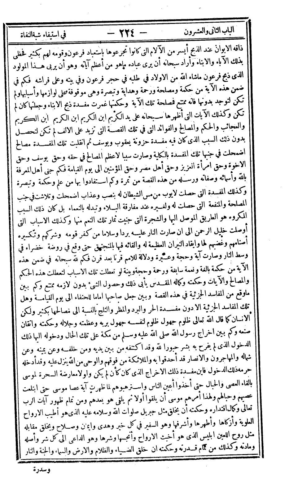 ذاقه الأبوان عند الذبح أيسر من الآلام التي كانوا تجرعوها باستعباد فرعون وقومه لهم بكثير فحظي بذلك الآباء والأبناء وأراد سبحانه أن يرى عباده ما هو من أعظم آياته وهو أن يربي هذا المولود الذي ذبح فرعون ما شاء الله من الأولاد في طلبه في حجر فرعون وفي بيته وعلى فراشه فكم في ضمن هذه الآية من حكمة ومصلحة ورحمة وهداية وتبصرة وهي موقوفة على لوازمها وأسبابها ولم تكن لتوجد بدونها فإنه ممتنع فمصلحة تلك الآية وحكمتها غمرت مفسدة ذبح الأبناء وجعلتها كأن لم تكن وكذلك الآيات التي أظهرها سبحانه على يد الكريم ابن الكريم ابن الكريم ابن الكريم والعجائب والحكم والمصالح والفوائد التي في تلك القصة التي تزيد على الألف لم تكن لتحصل بدون ذلك السبب الذي كان فيه مفسدة حزونة يعقوب ويوسف ثم انقلبت تلك المفسدة مصالح اضمحلت في جنبها تلك المفسدة بالكلية وصارت سببا لأعظم المصالح في حقه وحق يوسف وحق الإخوة وحق امرأة العزيز وحق أهل مصر وحق المؤمنين إلى يوم القيامة فكم جنى أهل المعرفة بالله وأسمائه وصفاته ورسله من هذه القصة من ثمرة وكم استفادوا بها من علم وحكمة وتبصرة وكذلك المفسدة التي حصلت لأيوب من مس الشيطان به بنصب وعذاب اضمحلت وتلاشت في جنب المصلحة والمنفعة التي حصلت له ولغيره عند مفارقة البلاء وتبدله بالنعماء بل كان ذلك السبب المكروه هو الطريق الموصل إليها والشجرة التي جنيت ثمار تلك النعم منها وكذلك الأسباب التي أوصلت خليل الرحمن إلى أن صارت النار عليه بردا وسلاما من كفر قومه وشركهم وتكسيره أصنامهم وغضبهم لها وإيقاد النيران العظيمة له وإلقائه فيها بالمنجنيق حتى وقع في روضة خضراء في وسط النار وصارت آية وحجة وعبرة ودلالة للأمم قرنا بعد قرن فكم لله سبحانه في ضمن هذه الآية من حكمة بالغة ونعمة سابغة ورحمة وحجة وبينة لو تعطلت تلك الأسباب لتعطلت هذه الحكم والمصالح والآيات وحكمته وكماله المقدس يأبى ذلك وحصول الشيء بدون لازمه ممتنع وكم بين ما وقع من المفاسد الجزئية في هذه القصة وبين جعل صاحبها إماما للحنفاء إلى يوم القيامة وهل تلك المفاسد الجزئية إلا دون مفسدة الحر والبرد والمطر والثلج بالنسبة إلى مصالحها بكثير ولكن الإنسان كما قال الله تعالى: {ظَلُوماً جَهُولاً} ظلوم لنفسه جهول بربه وعظمته وجلاله وحكمته وإتقان صنعه وكم بين إخراج رسول الله صلى الله عليه وسلم من مكة على تلك الحال ودخوله إليها ذلك الدخول الذي لم يفرح به بشر حبورا لله وقد اكتنفه من بين يديه ومن خلفه وعن يمينه وعن شماله والمهاجرون والأنصار قد أحدقوا به والملائكة من فوقهم والوحي من الله ينزل عليه وقد أدخله حرمه ذلك الدخول فأين مفسدة ذلك الإخراج الذي كان كأن لم يكن ولولا معارضة السحرة لموسى بإلقاء العصي والحبال حتى أخذوا أعين الناس واسترهبوهم لما ظهرت آية عصا موسى حتى ابتلعت عصيهم وحبالهم ولهذا أمرهم موسى أن يلقوا أولا ثم يلقي هو بعدهم ومن تمام ظهور آيات الرب تعالى وكمال اقتداره وحكمته أن يخلق مثل جبريل صلوات الله وسلامه عليه الذي هو أطيب الأرواح العلوية وأزكاها وأطهرها وأشرفها وهو السفير في كل خير وهدى وإيمان وصلاح ويخلق مقابله مثل روح اللعين إبليس الذي هو أخبث الأرواح وأنجسها وشرها وهو الداعي إلى كل شر وأصله ومادته وكذلك من تمام قدرته وحكمته أن خلق الضياء والظلام والأرض والسماء والجنة والنار