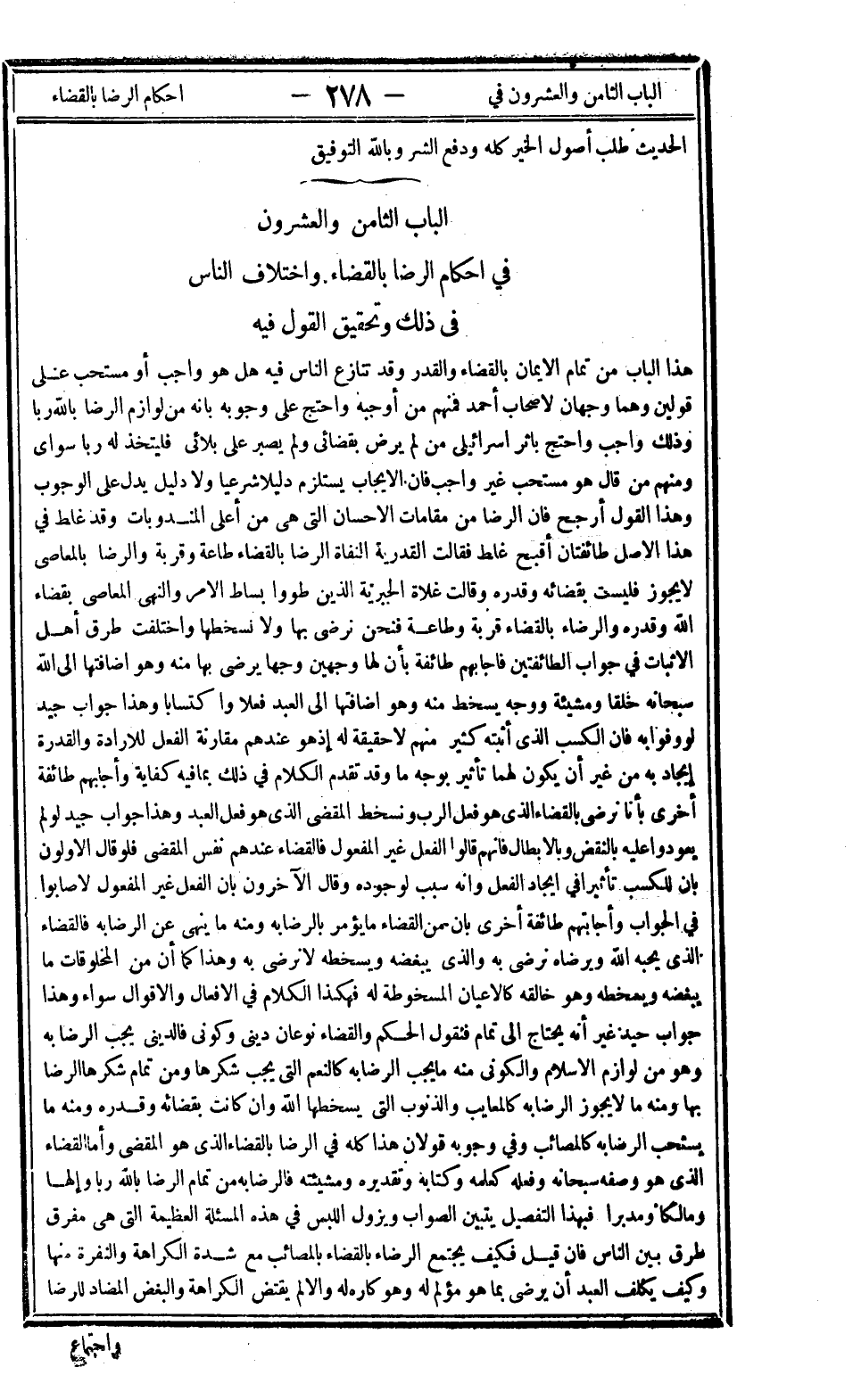 الباب الثامن والعشرون: في أحكام الرضا بالقضاء واختلاف الناس في ذلك وتحقيق القول فيه