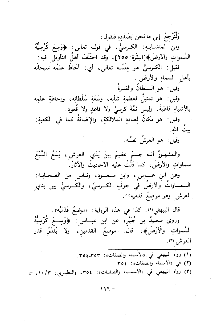 وَمن الْمُتَشَابه الْكُرْسِيّ فِي قَوْله تَعَالَى {وسع كرسيه السَّمَاوَات وَالْأَرْض} الْبَقَرَة 255 وَقد اخْتلف أهل التَّأْوِيل فِيهِ