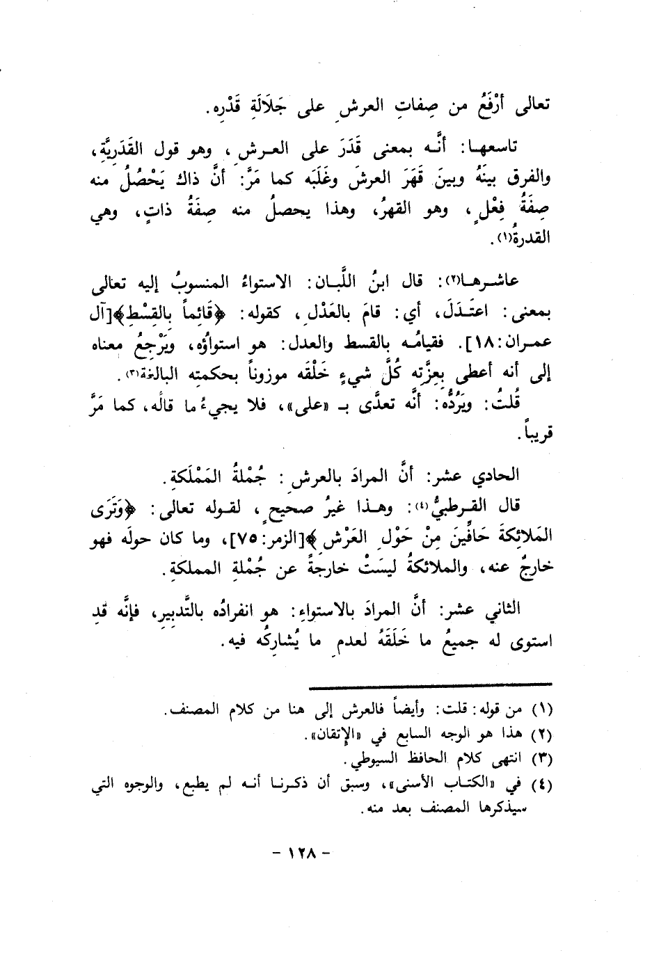 تاسعها أَنه بِمَعْنى قدر على الْعَرْش وَهُوَ قَول الْقَدَرِيَّة وَالْفرق بَينه وَبَين قهر الْعَرْش وغلبه كَمَا مر أَن ذَاك يحصل مِنْهُ صفة فعل وَهُوَ الْقَهْر وَهَذَا يحصل مِنْهُ صفة ذَات وَهِي الْقُدْرَة