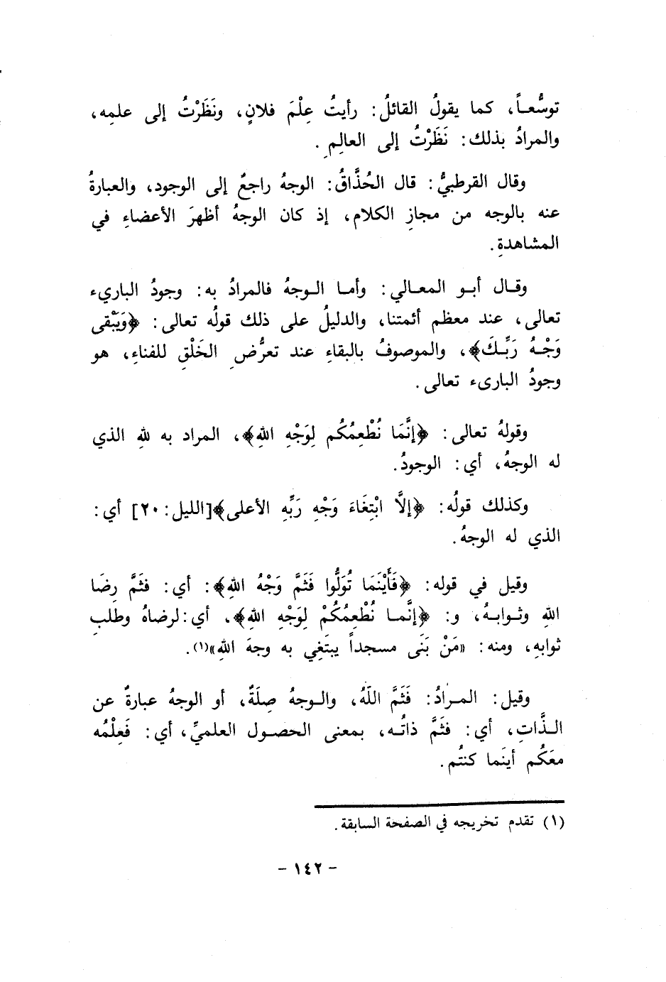 وَقَوله تَعَالَى {إِنَّمَا نطعمكم لوجه الله} المُرَاد بِهِ لله الَّذِي لَهُ الْوَجْه أَي الْوُجُود